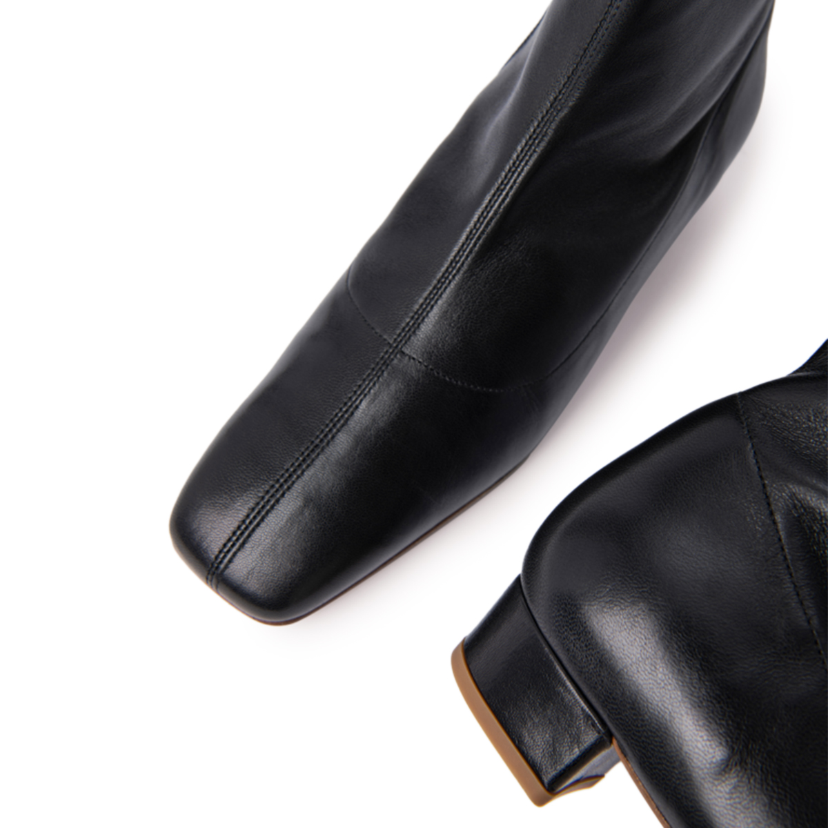 Vegan Leather Square Toe Side-Zip Sexy Ankle Booties in Black