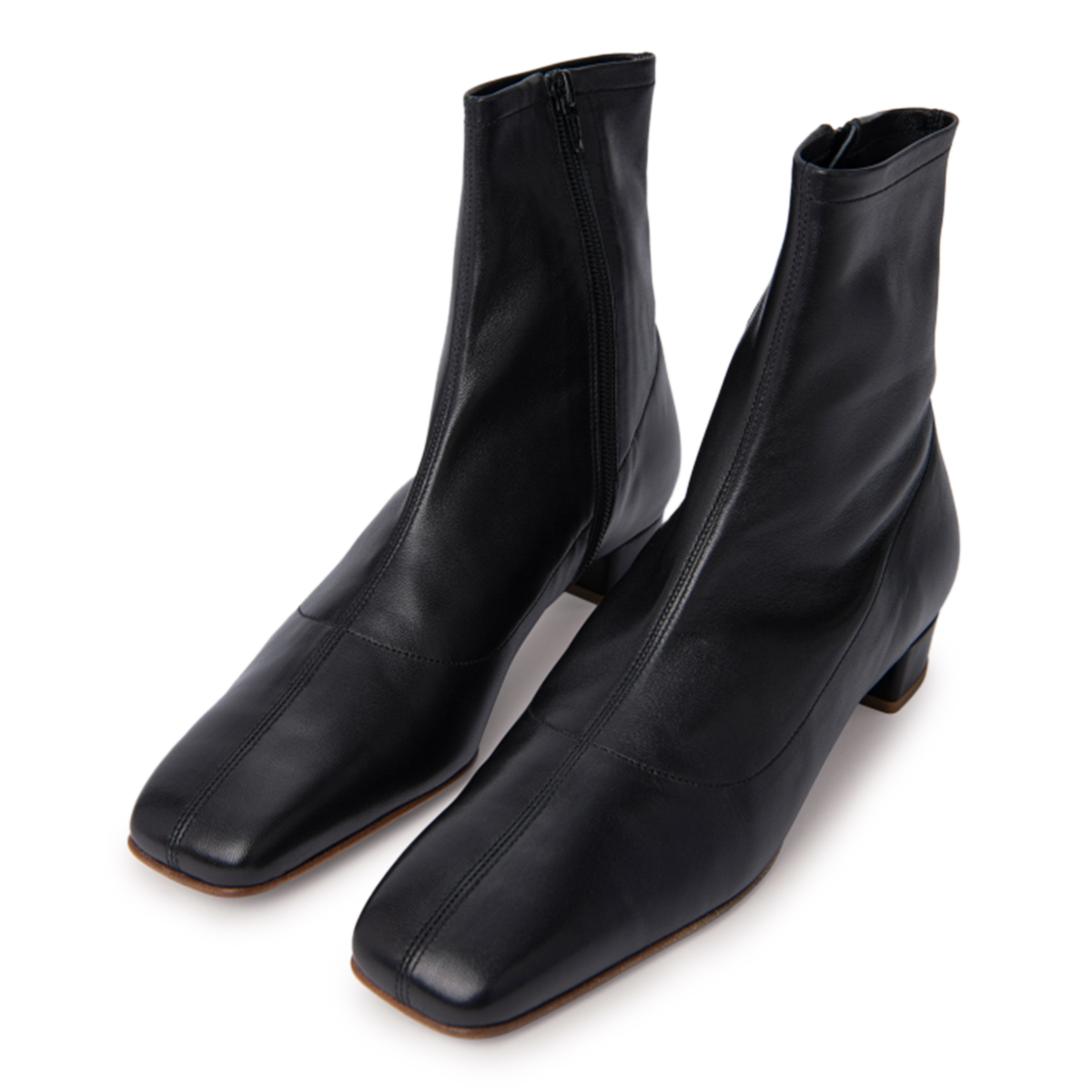 • Special Designs: Black ankle boots with vegan leather sophistication and side-zip closure.