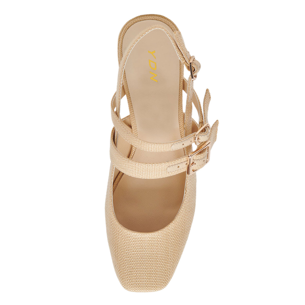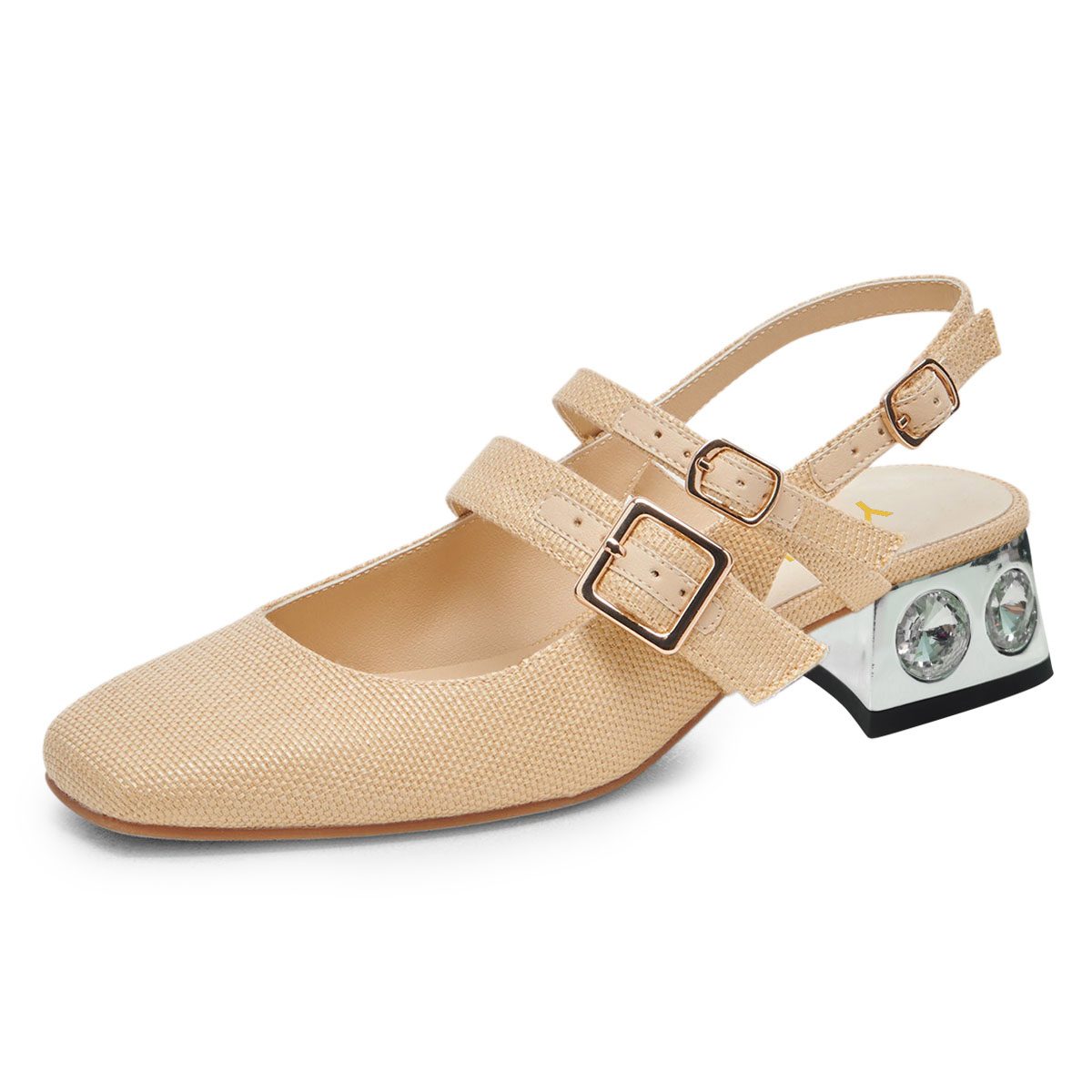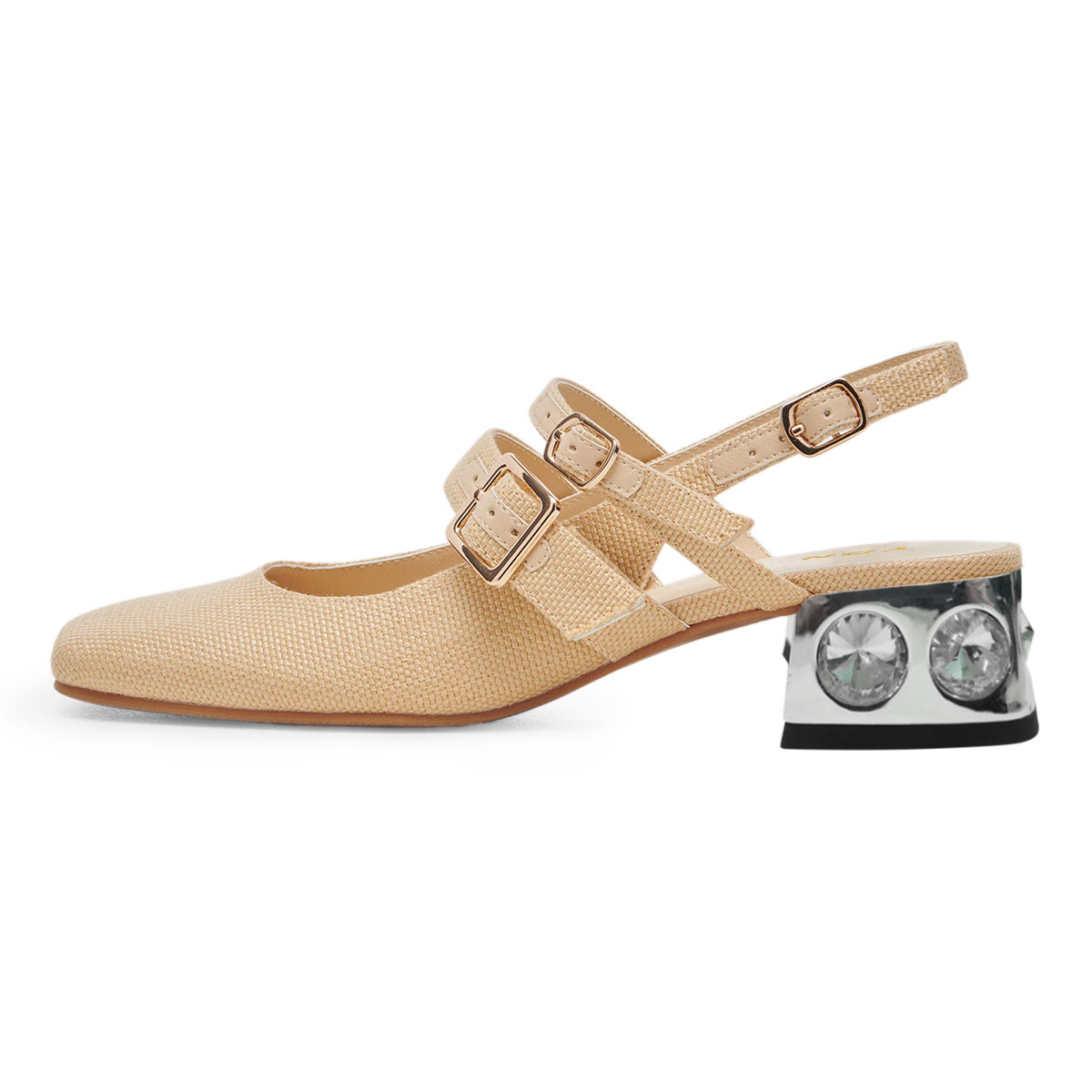 Vegan Leather Square Toe Woven Slingback Decorative Heel Nude Loafers