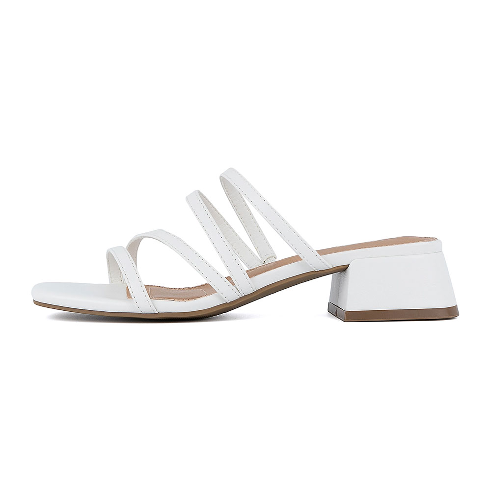 Vegan Leather Strappy Slip On Square Toe White Sandals for Women