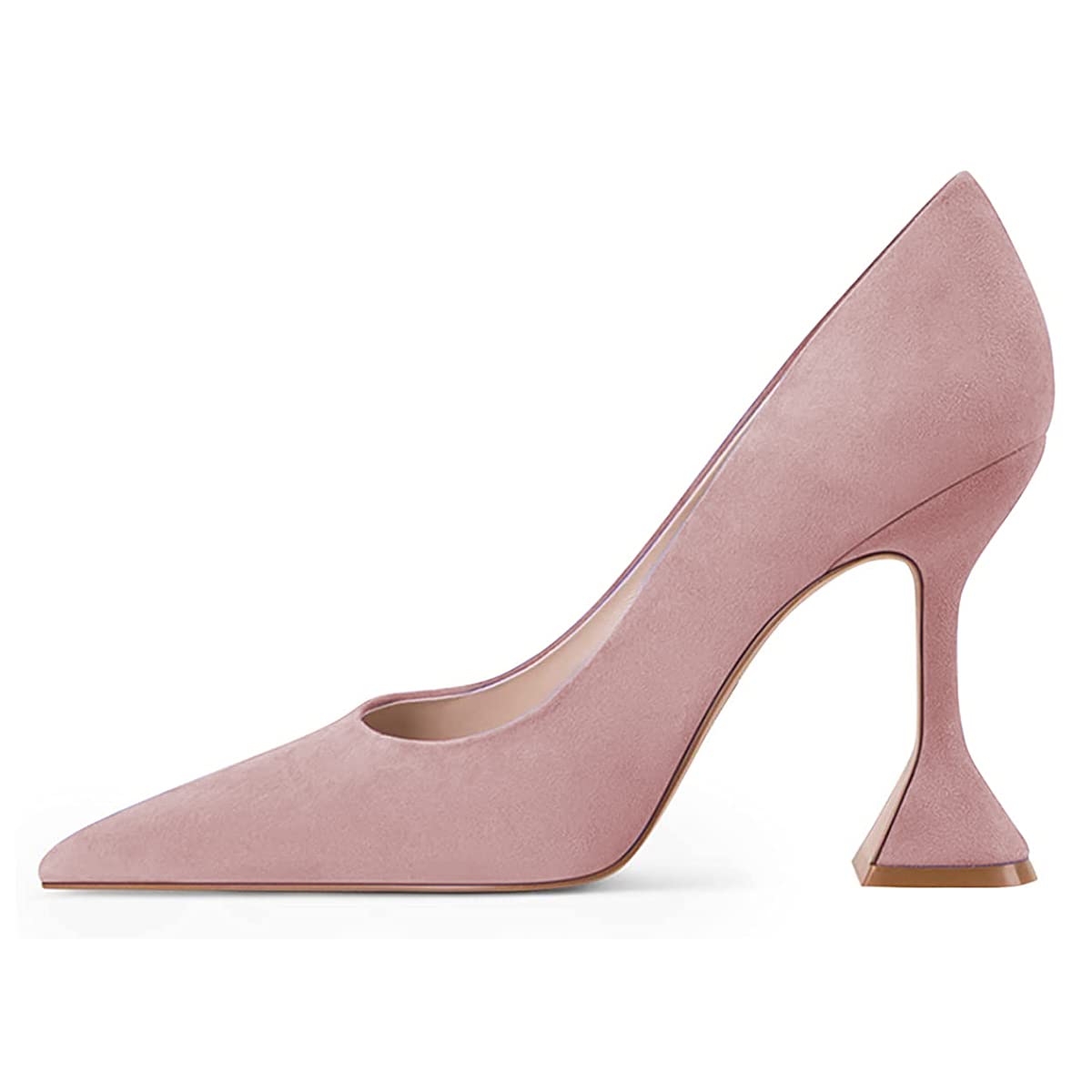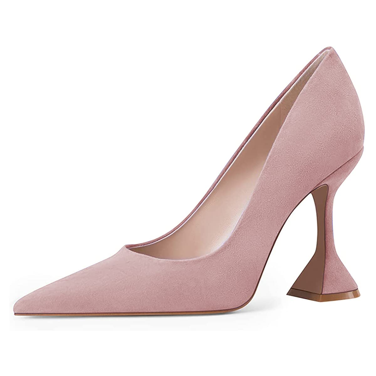 Vegan Suede Pointed Toe Flared Heel Pumps Shoes in Light Pink