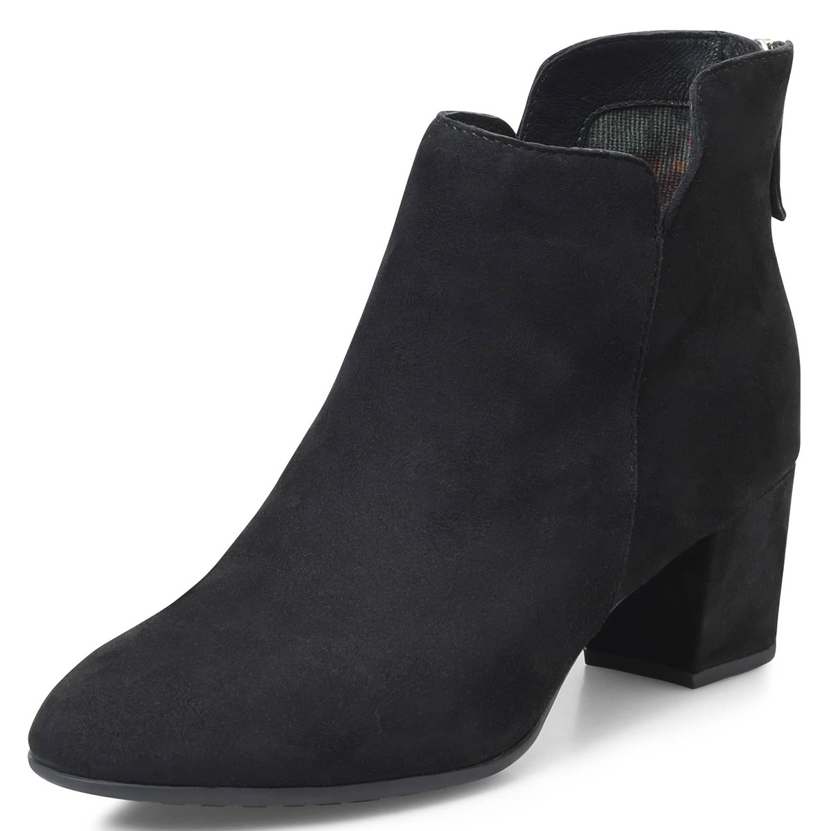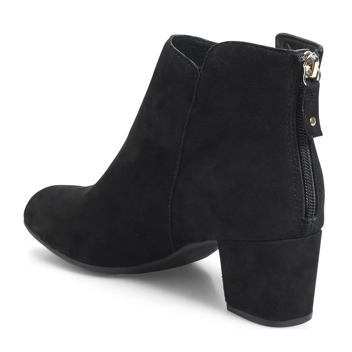 Vegan Suede Round Toe Zipper Ankle Boots for Women with Block Heel