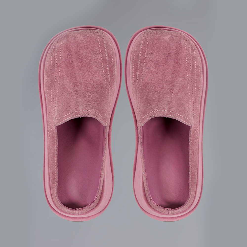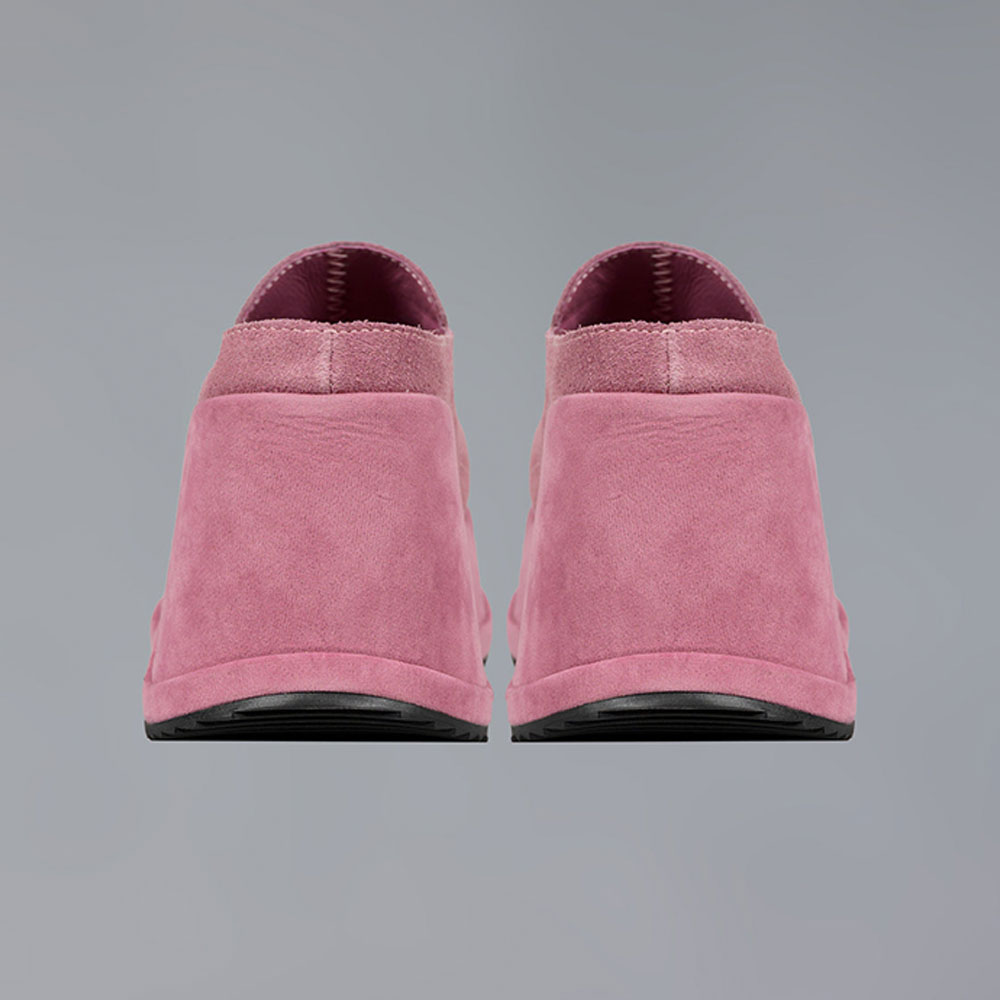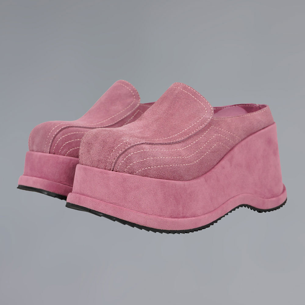 Vegan Suede Wedge Heel Platform Slip On Mules for Women in Pink