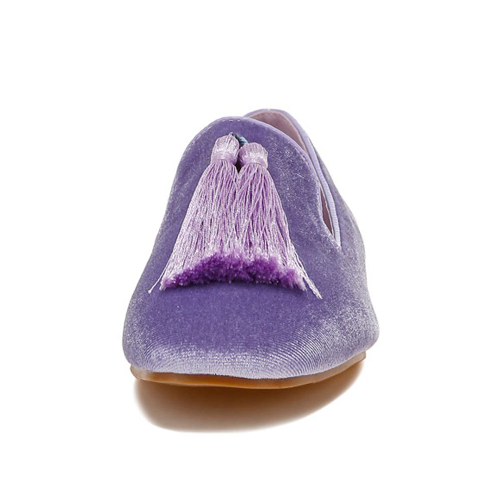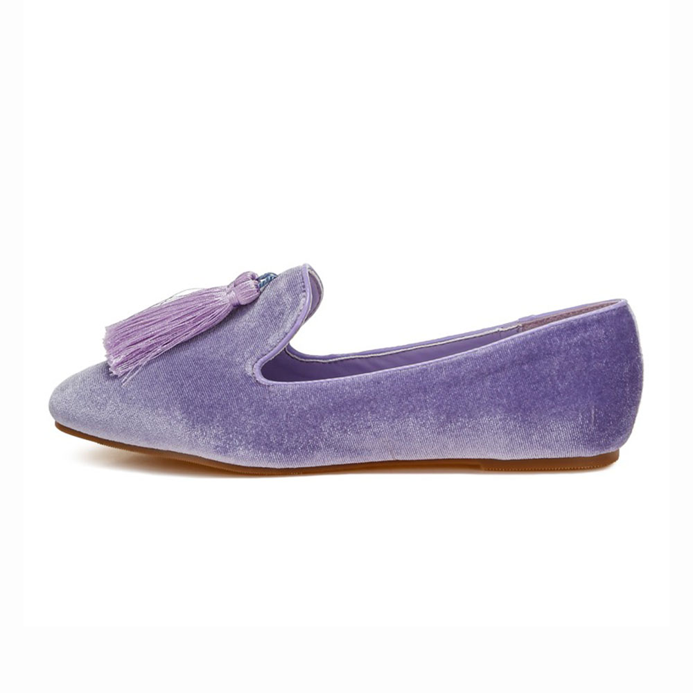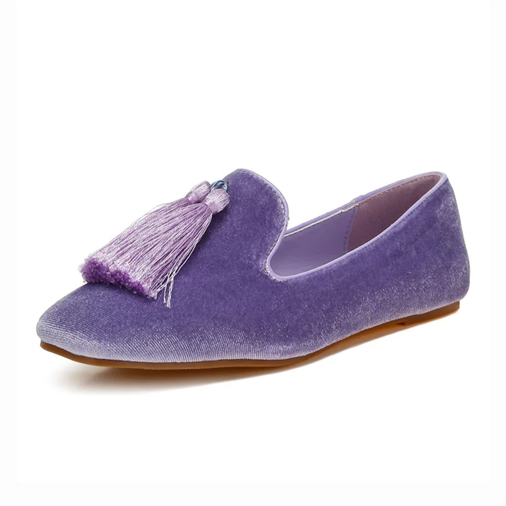 Velvet Tassel Decor Round Toe Loafer Shoes Women in Purple