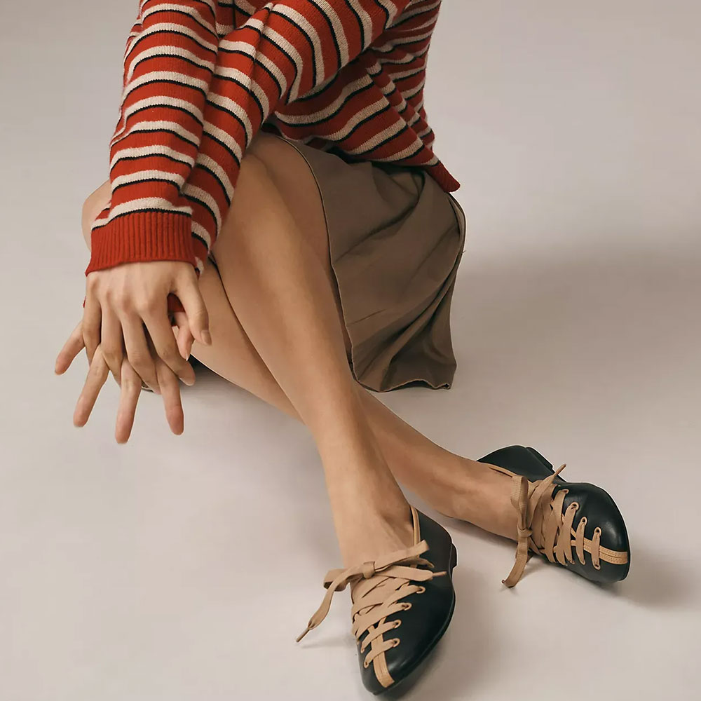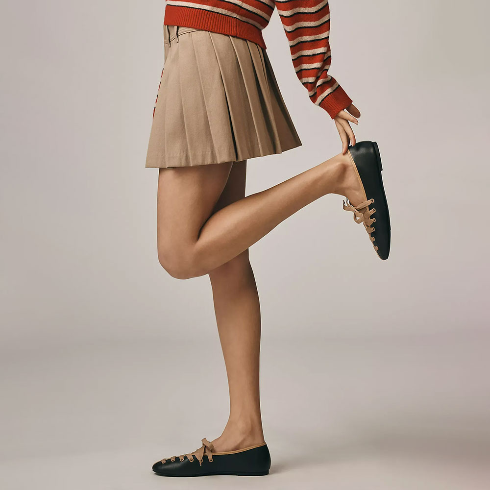 Special Designs: These flats feature a lace-up, a grommet, and a closed-toe design.