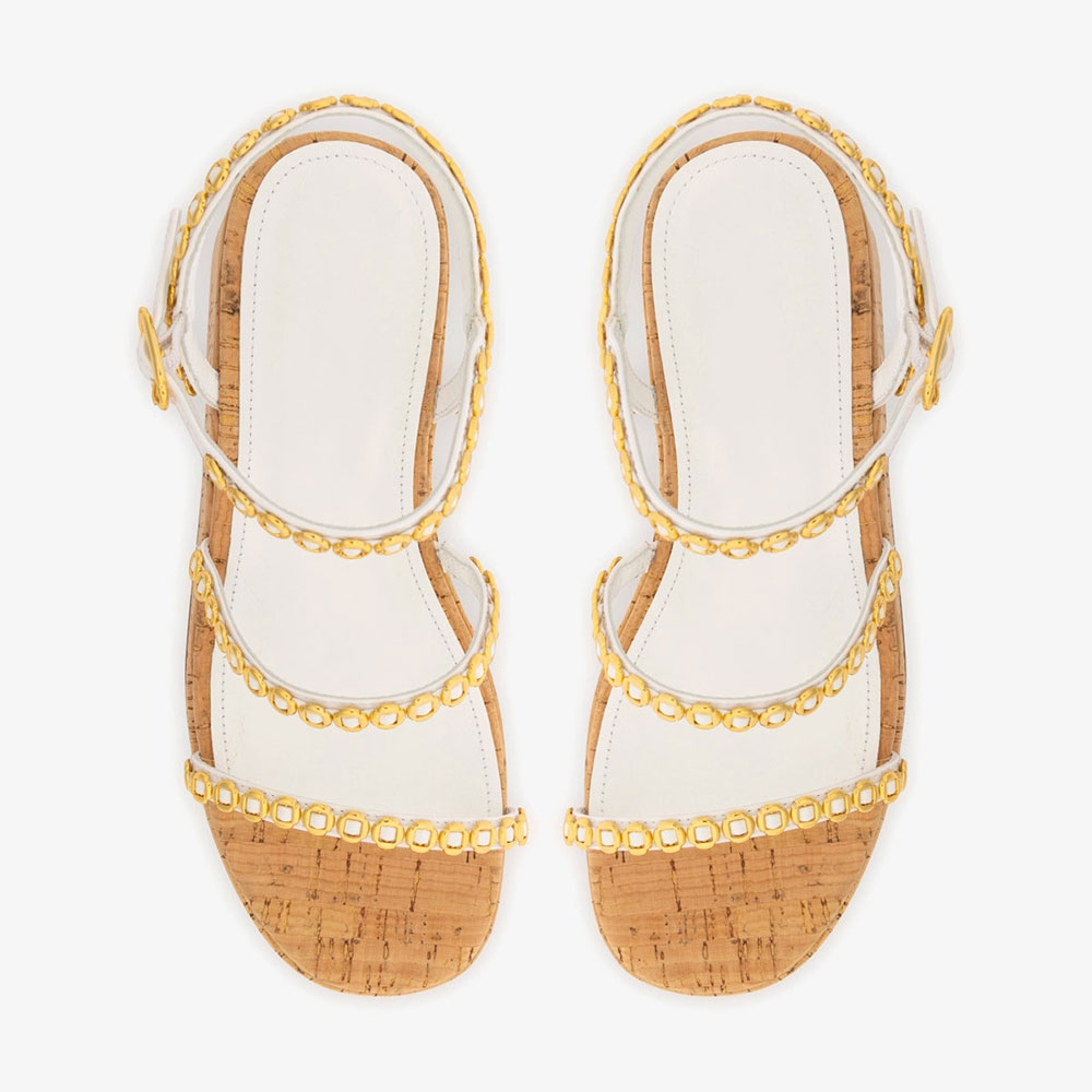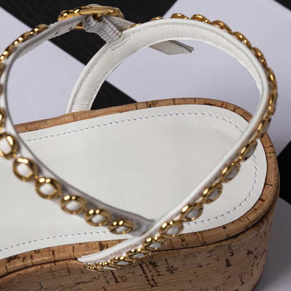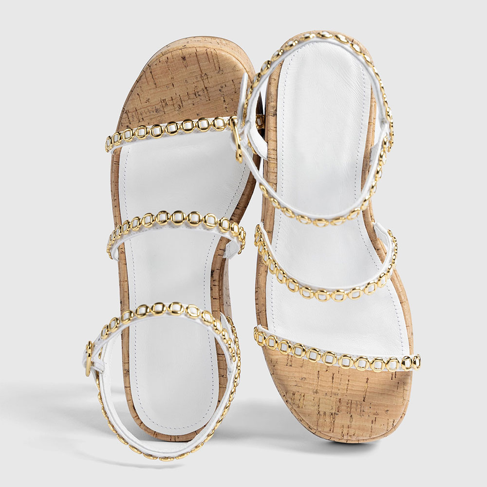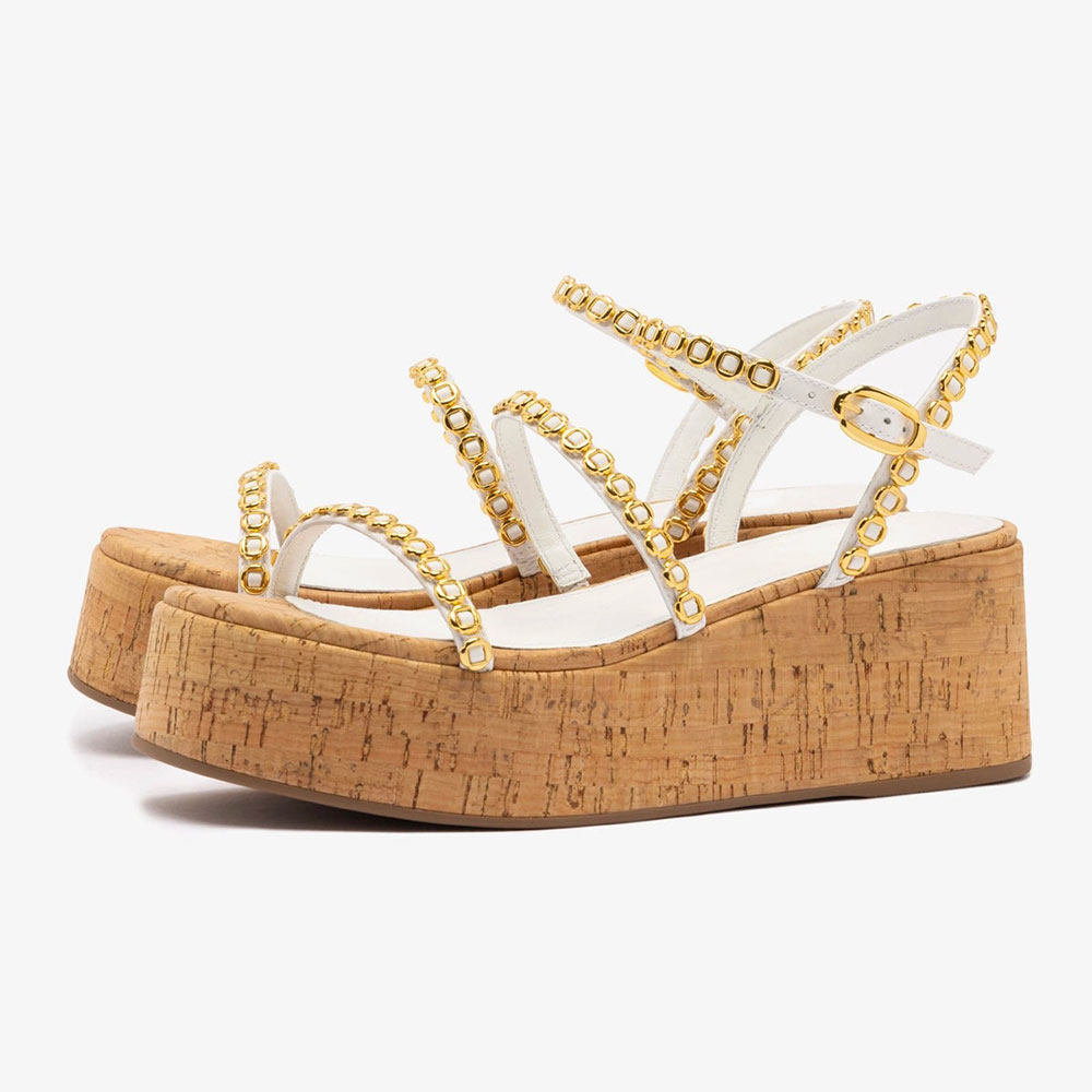 White Ankle Strap Wedge Heel Gold Hardware Platform Sandals for Women
