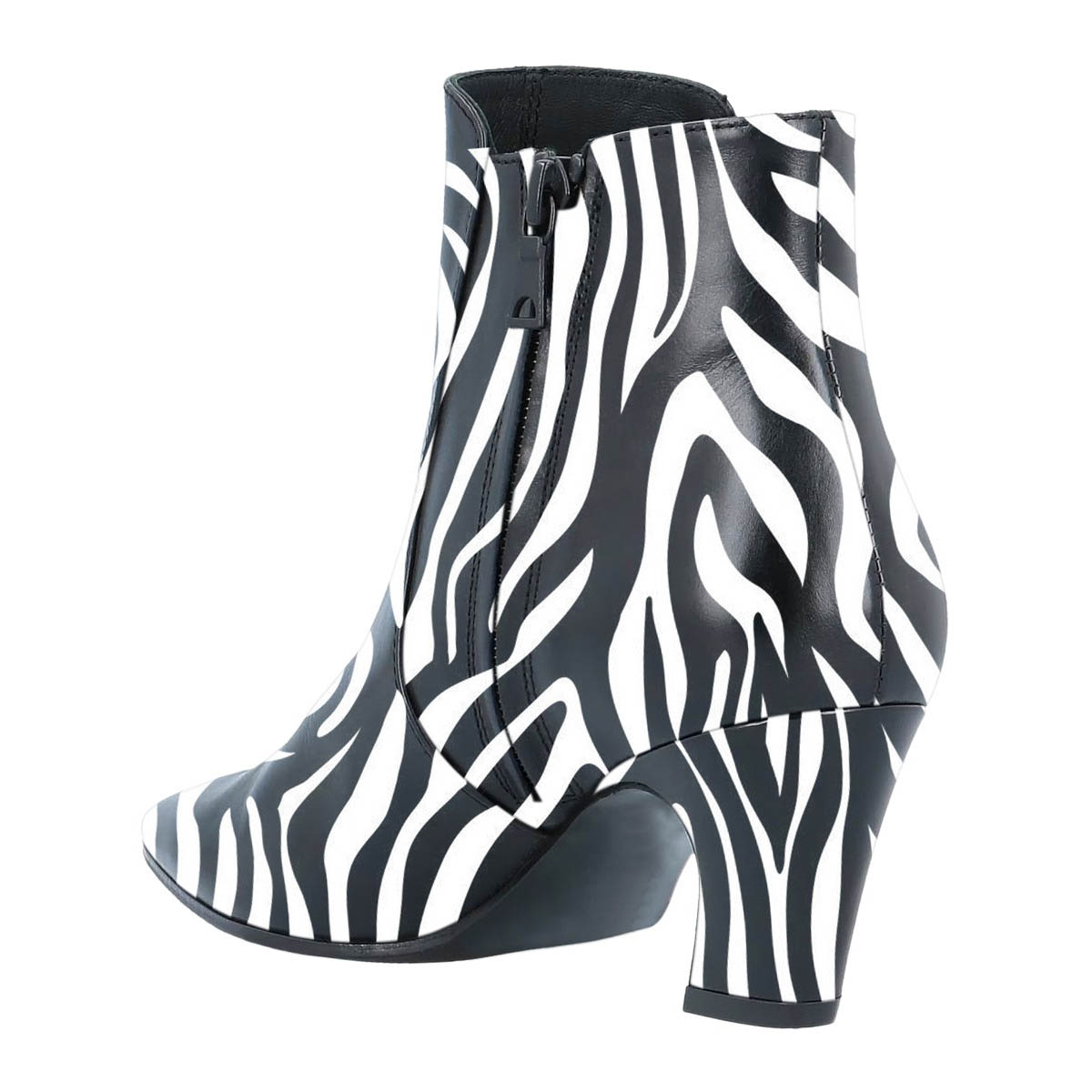 White & Black Chunky Heel Zebra Print Zipper Pointed Toe Boots