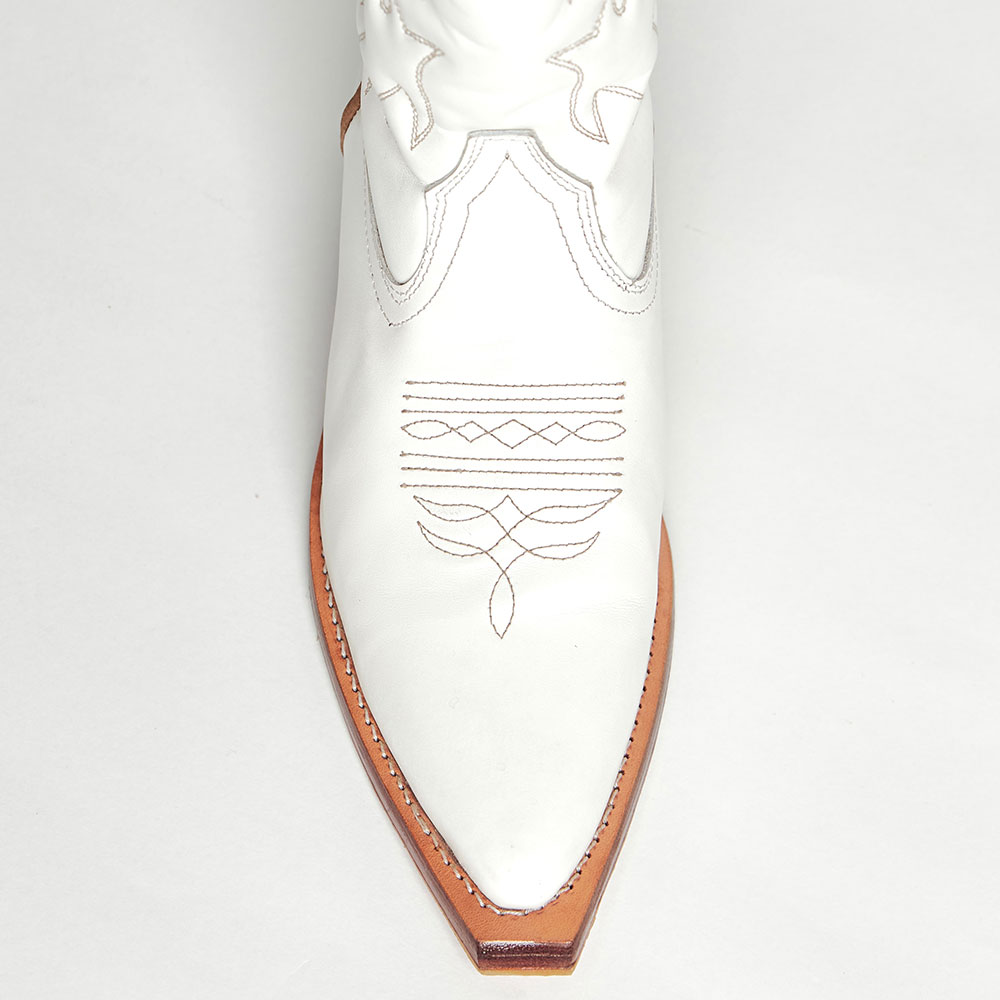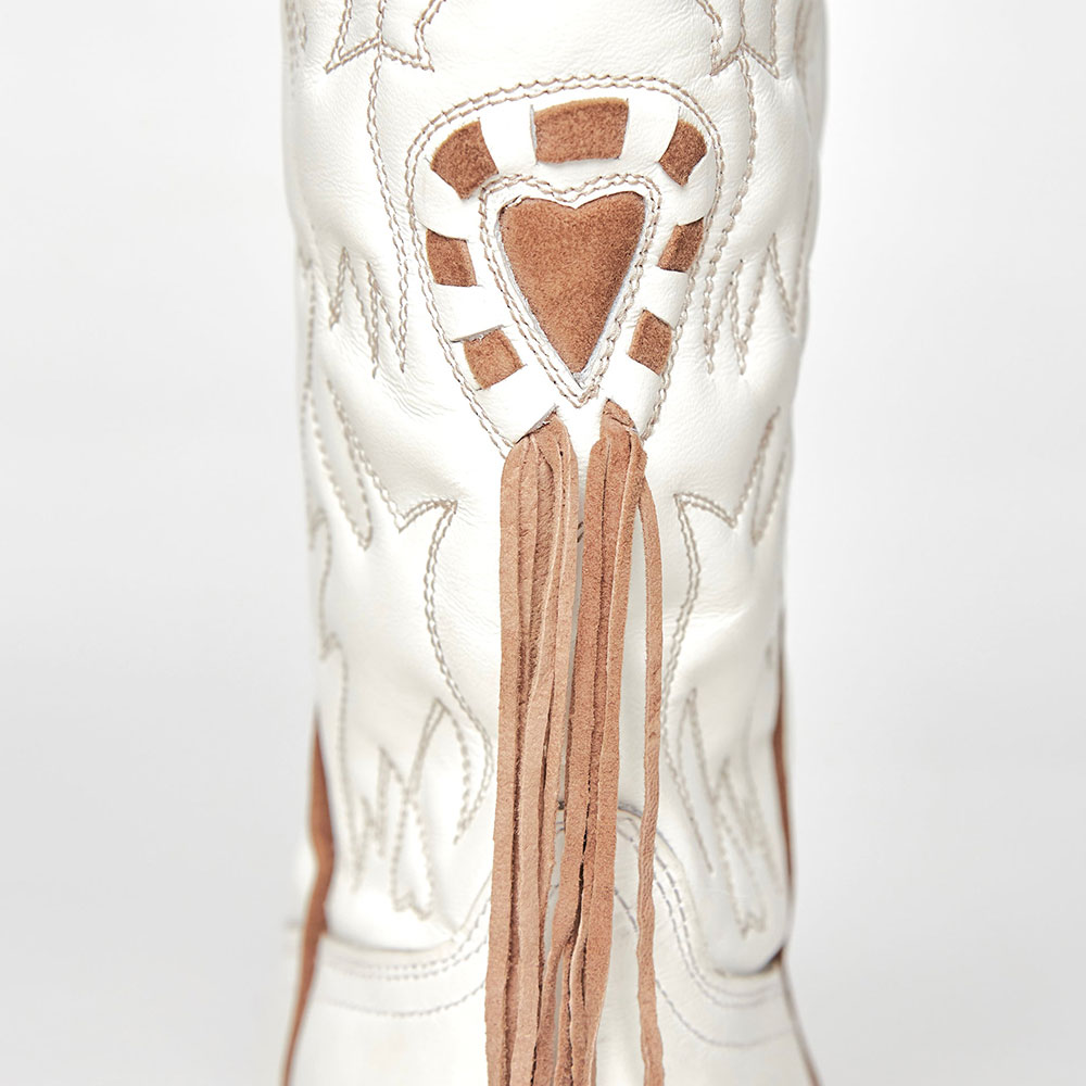 White Pointed Toe Embroidered Stacked Heel Fringe Cowgirl Boots