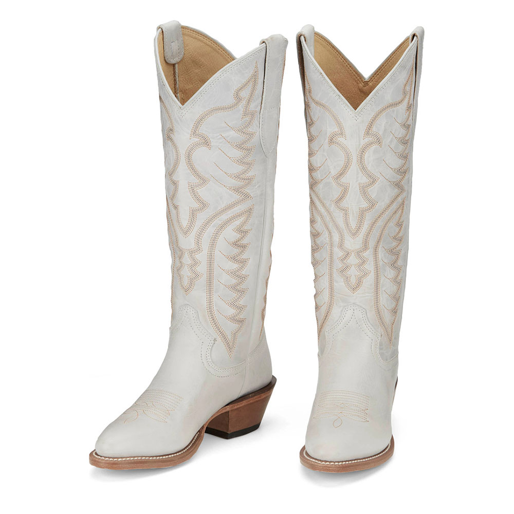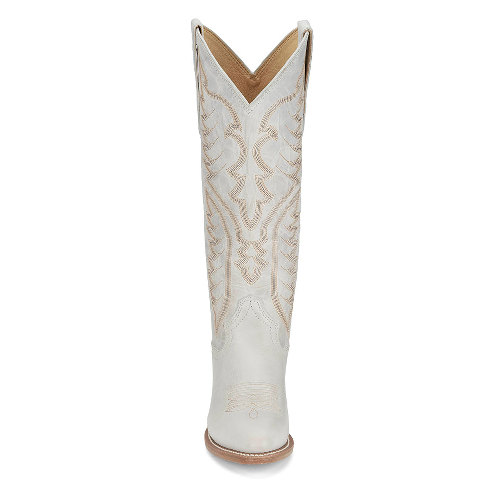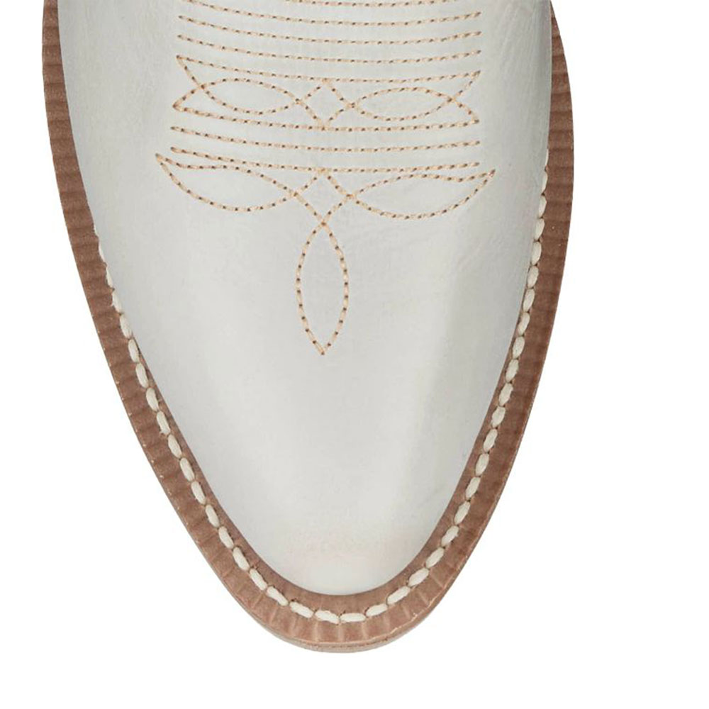 White Round Toe Chunky Heel Knee-High Cowgirl Boots with Embroidery