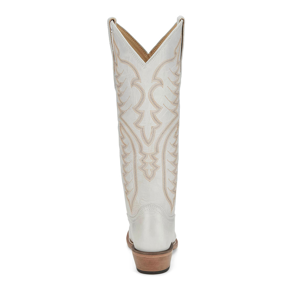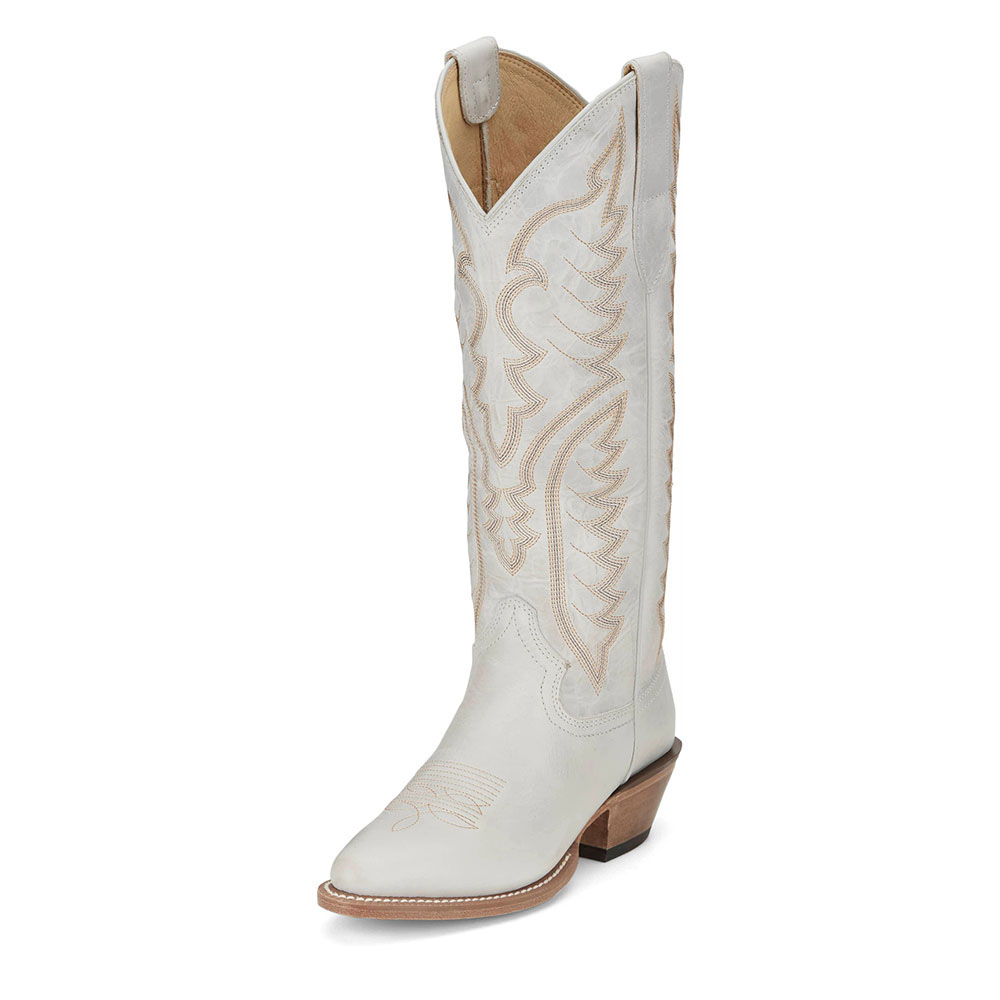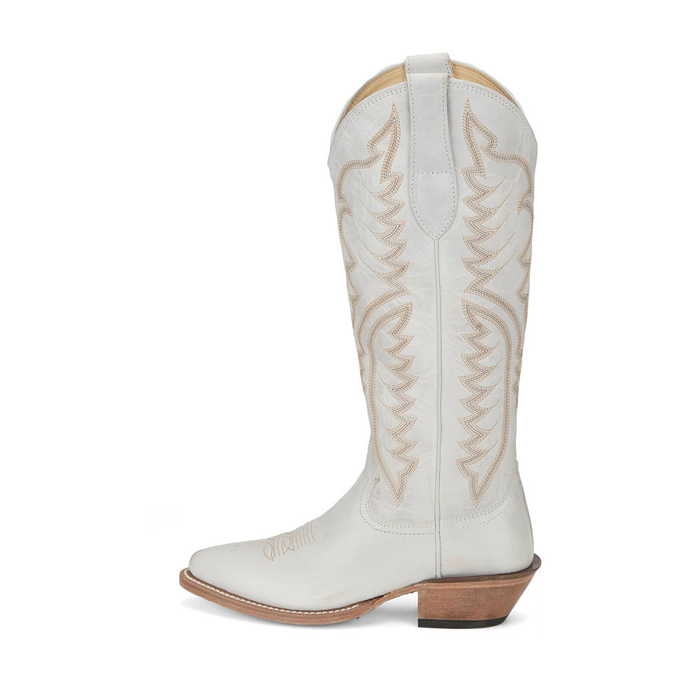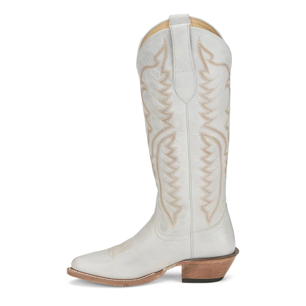 White Round Toe Chunky Heel Knee-High Cowgirl Boots with Embroidery