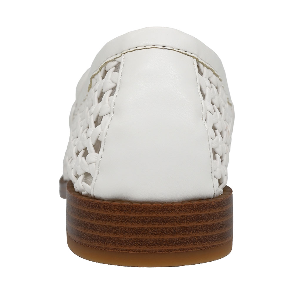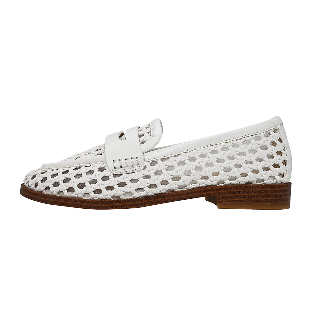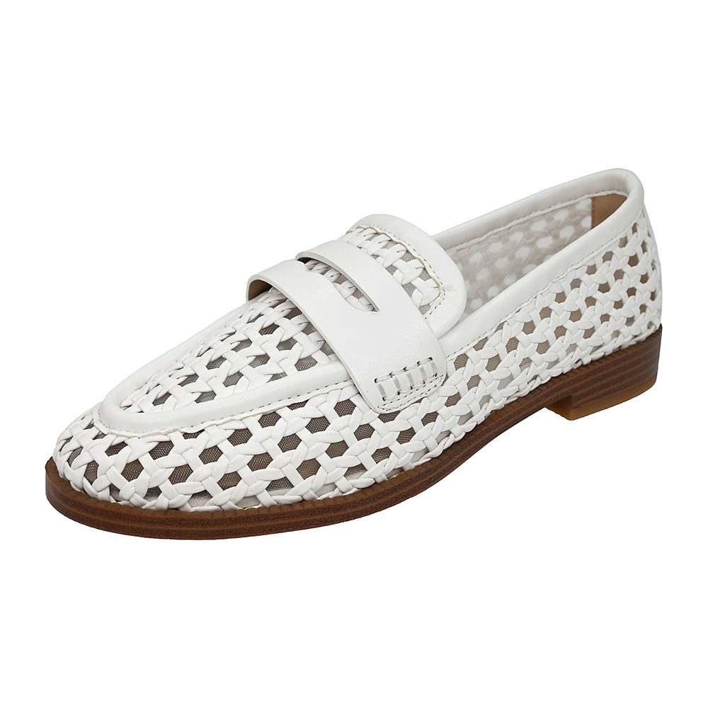 White Round Toe Flat Braid Mesh Penny Loafers Women with Cut Out