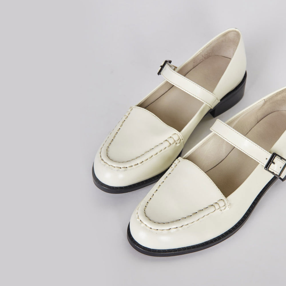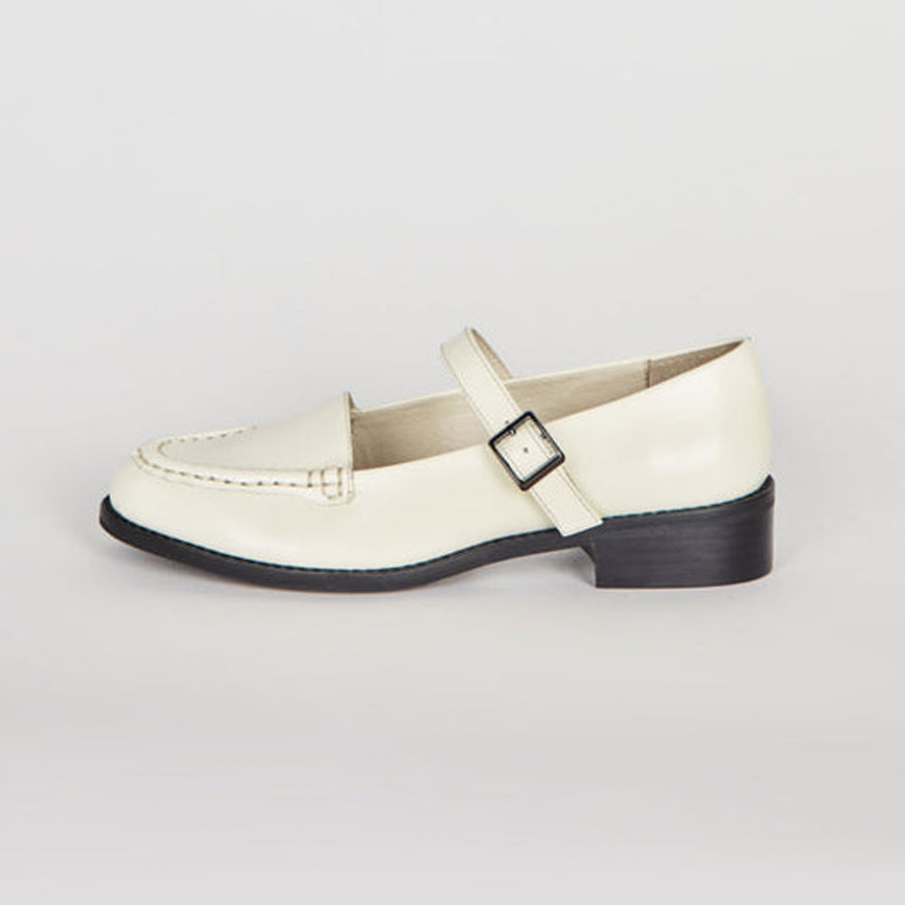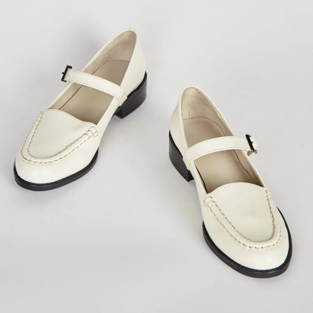 White Round Toe Low Block Heel Buckle Women Mary Jane Shoes