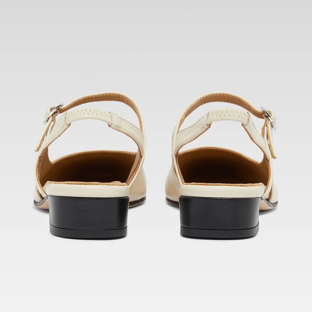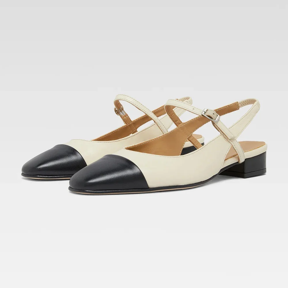 Women's Black & Beige Mary Jane Slingback Flat Closed Toe Shoes