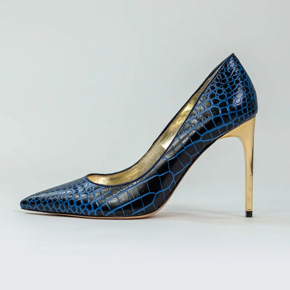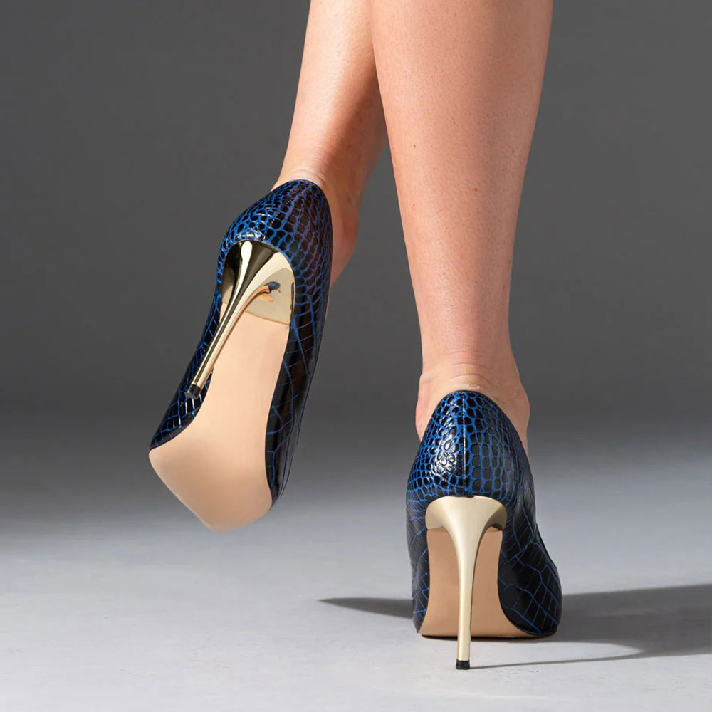 Women's Black & Blue Pointed Toe Stiletto Embossed Pumps Heels