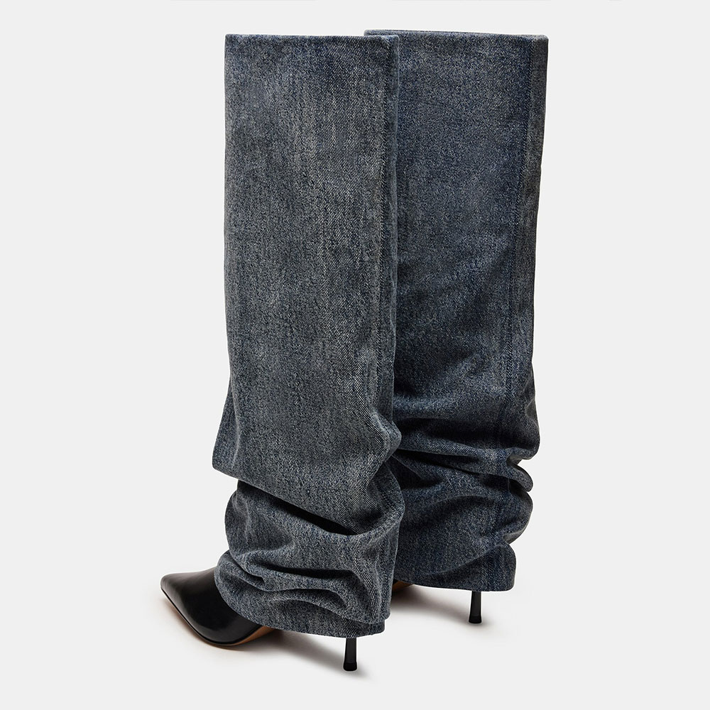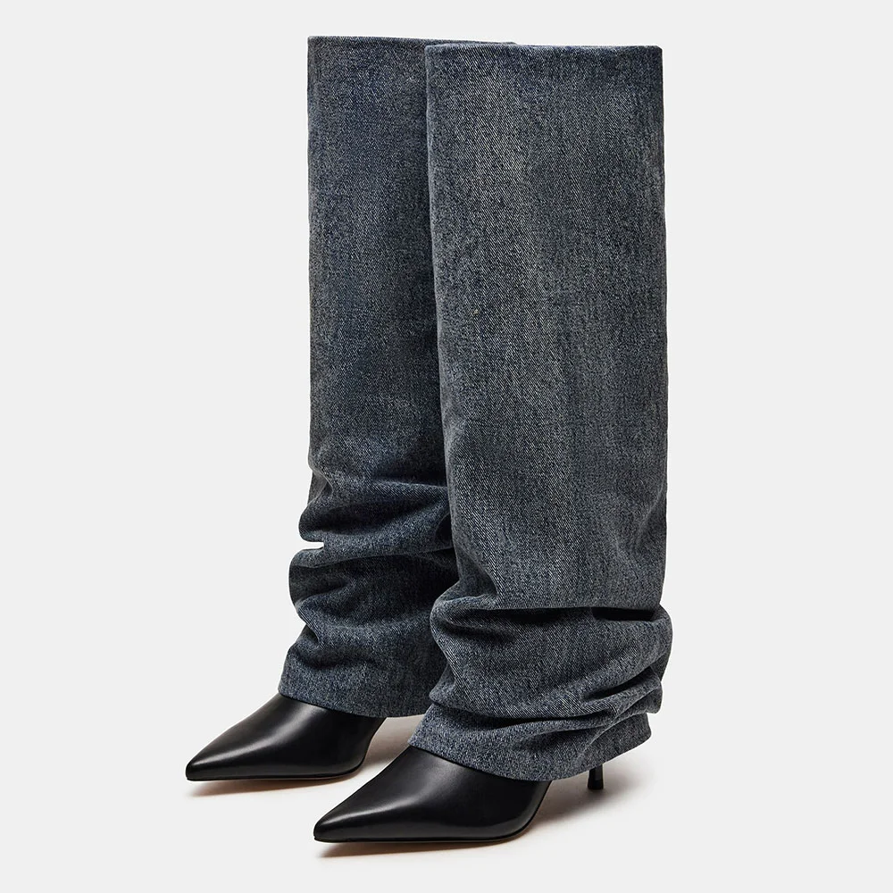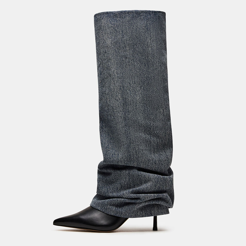 Special Designs: The boots feature a pointed toe, a fold-over, and a knee-high length.