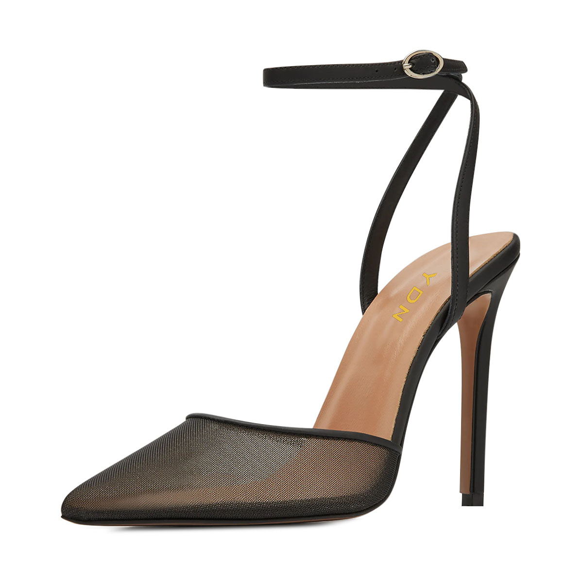 Women's Black Mesh & Satin Ankle Strappy Pumps with Stiletto Heel