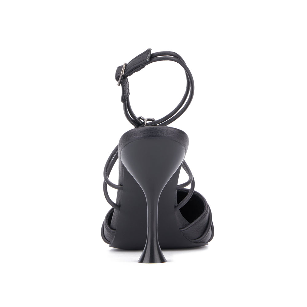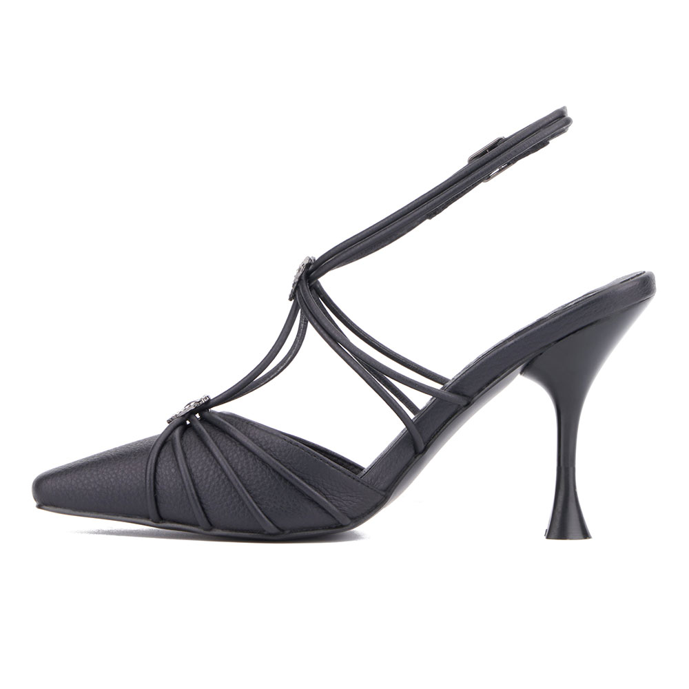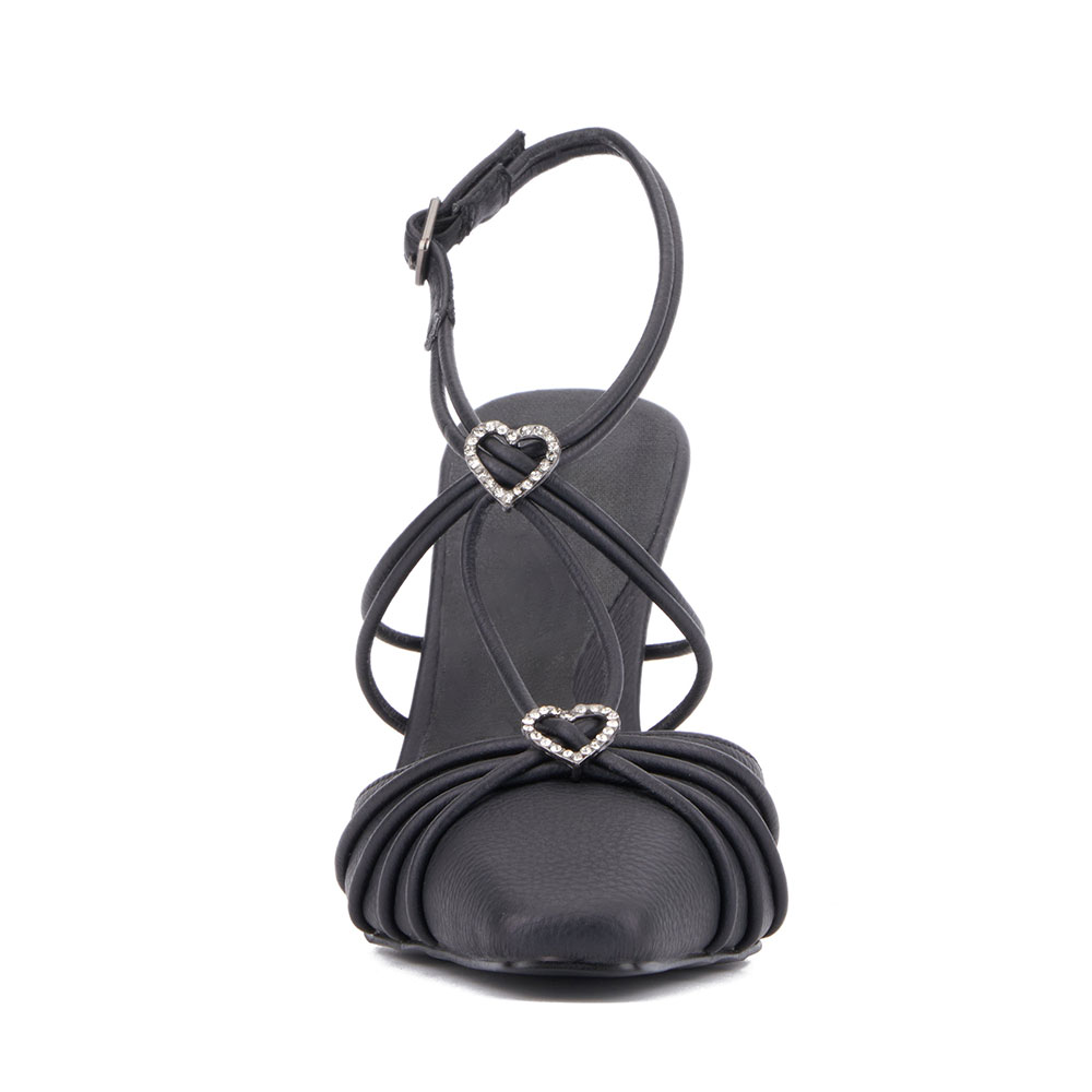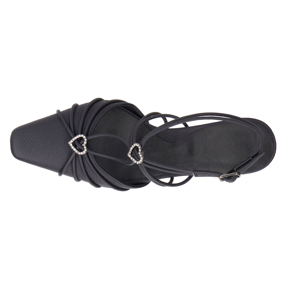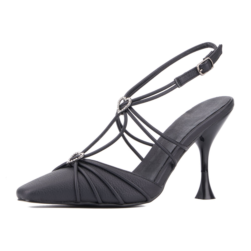 Women's Black Pointed Toe Buckled Rhinestone Heart Pumps Heels