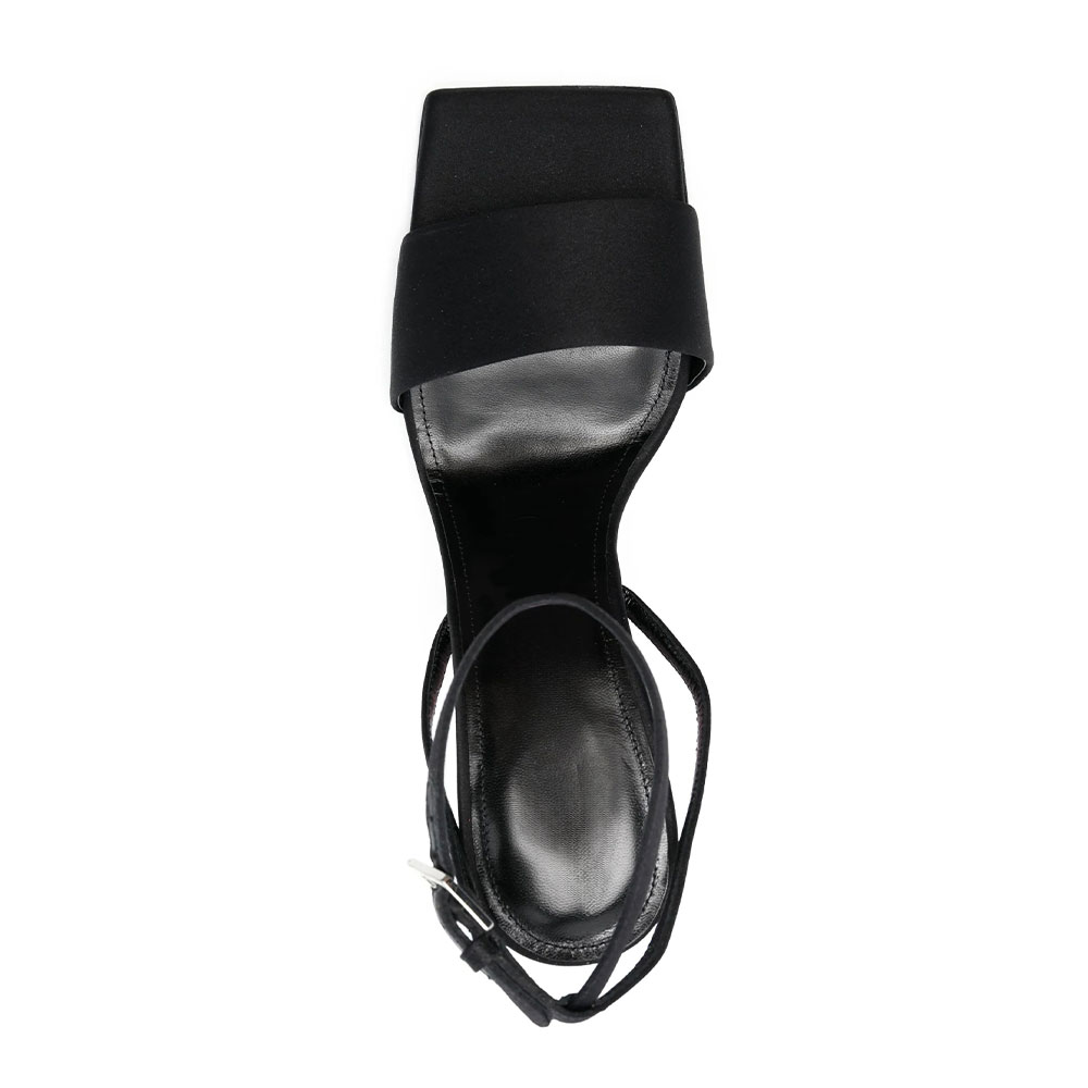 Women's Black Square Toe Sculptural Heel Ankle Strap Summer Sandals