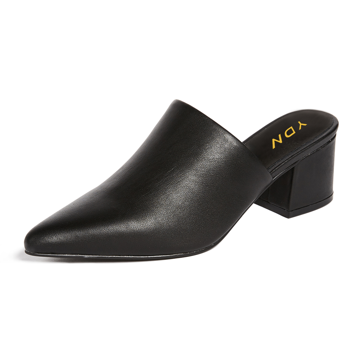 Women's Black Vegan Leather Pointed Toe Classy Mules with Block Heels