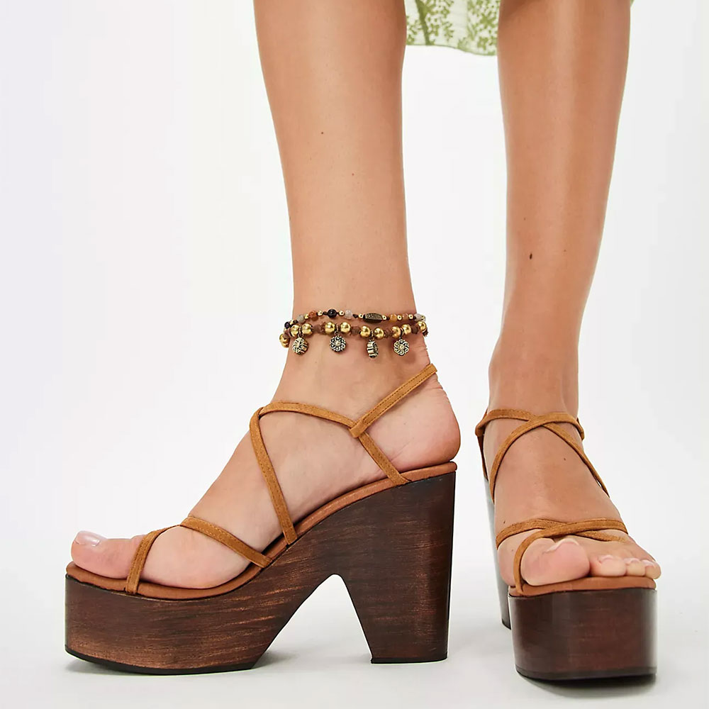 Women's Brown Open Toe Slingback Platform Buckle Heeled Sandals