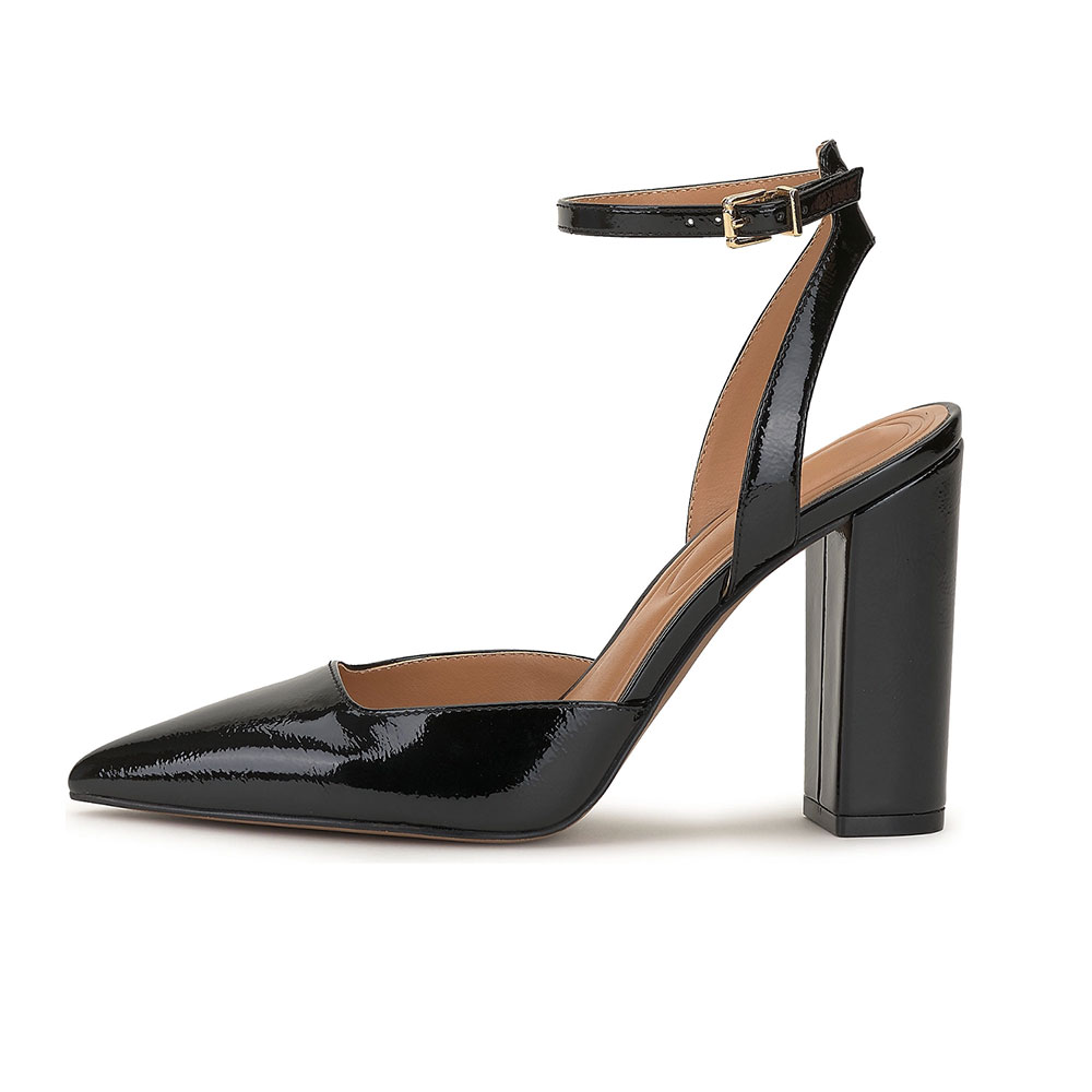 Women's Elegant Black Pointed Toe Ankle Strap Heels with Buckle