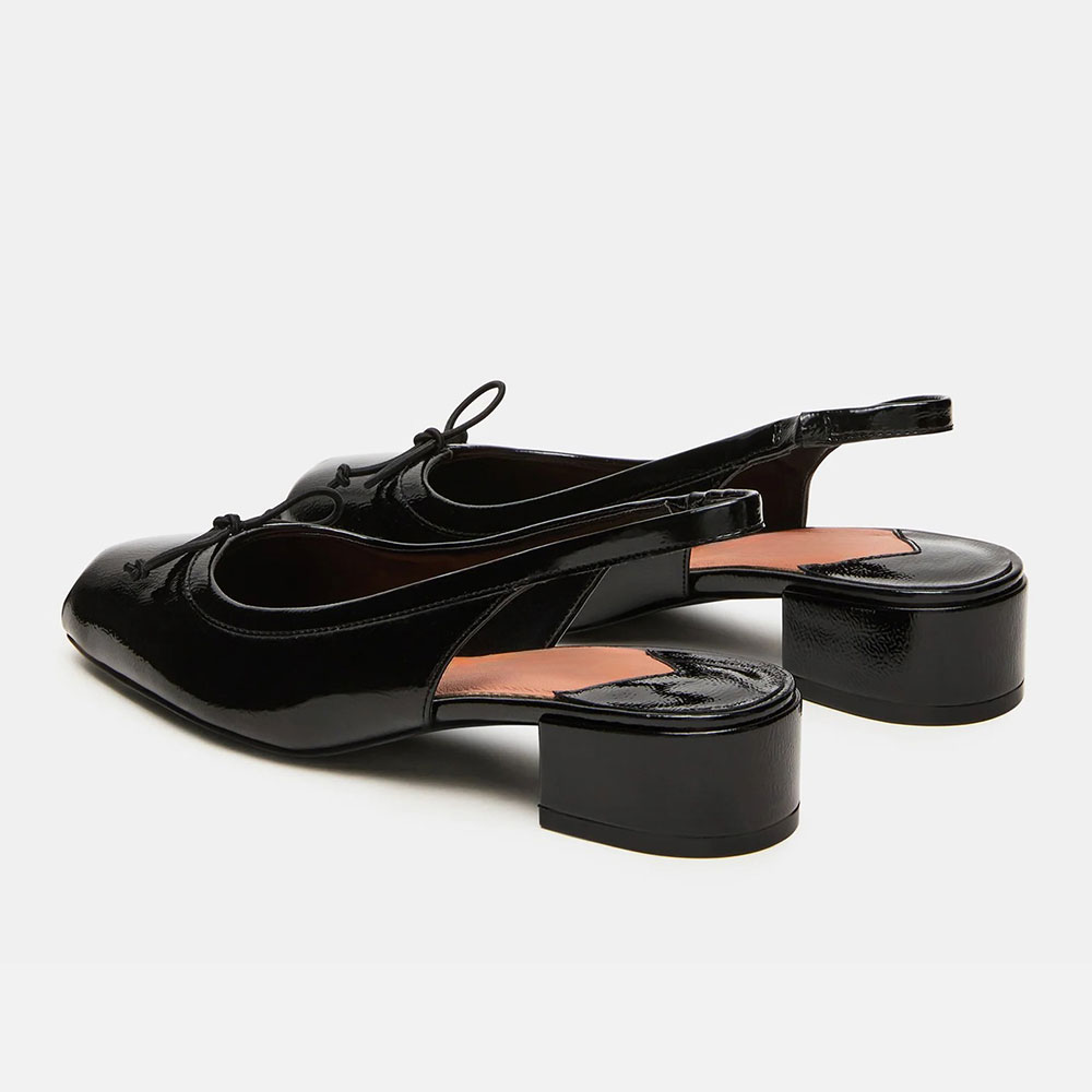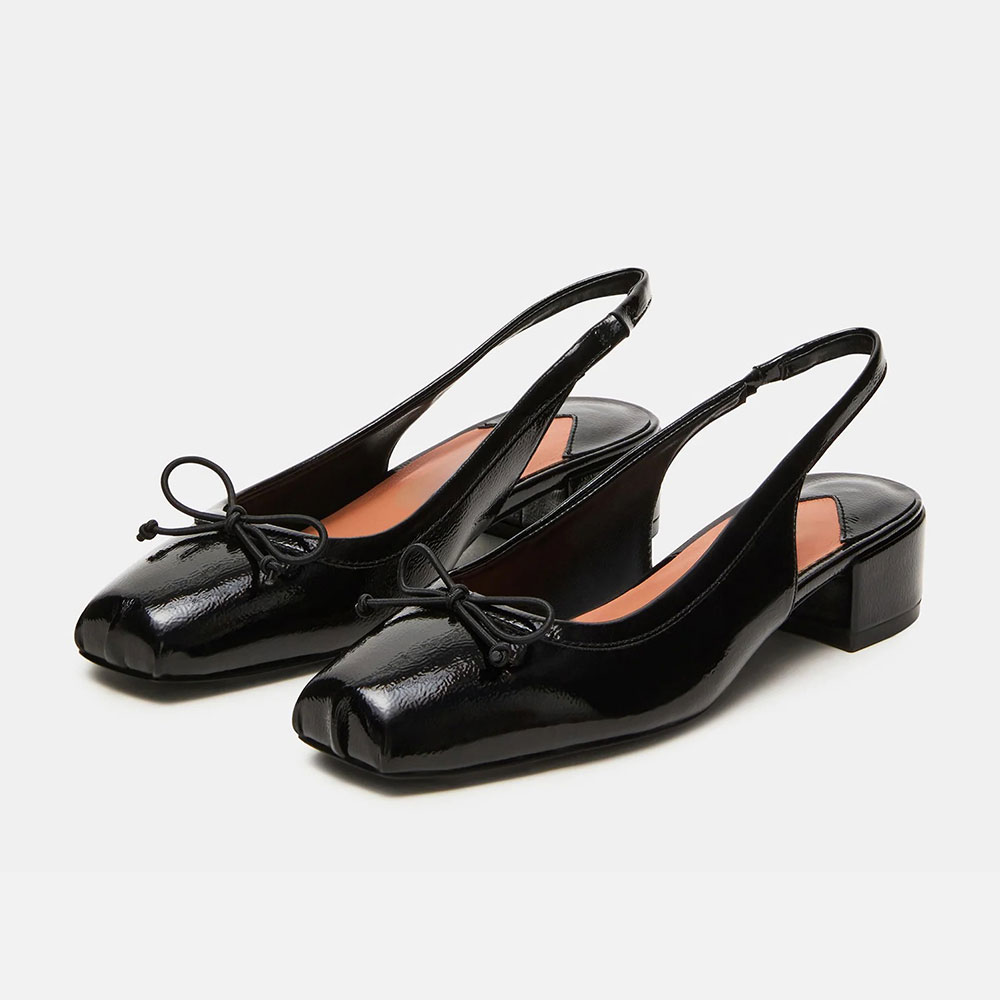 Women's Elegant Black Square Toe Bow Slingback Low Block Heel Pumps