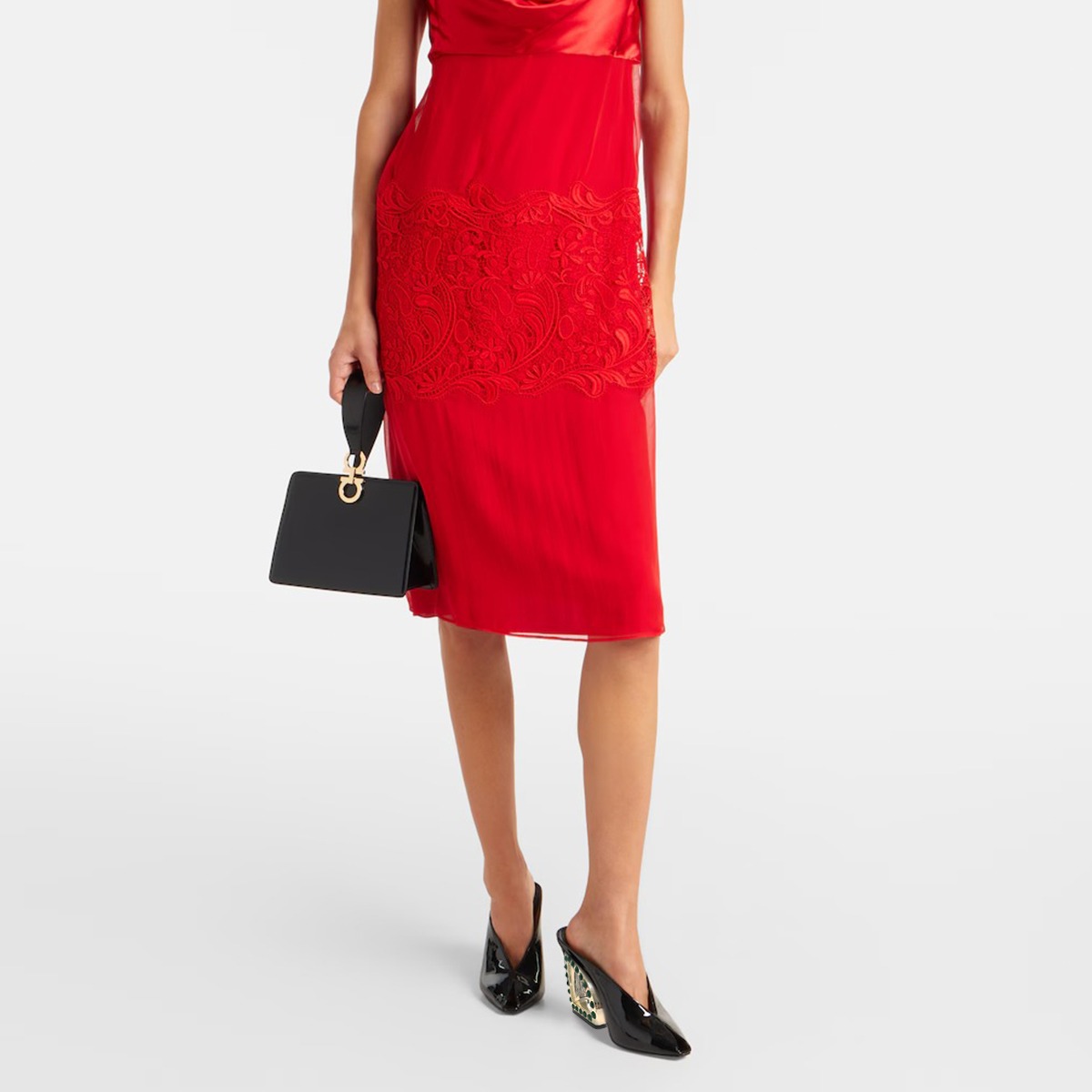 Special Designs: These mules feature a peep-toe, a rhinestoned sculptural heel, and a slip-on style.