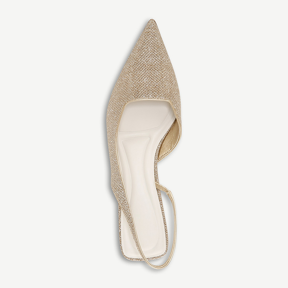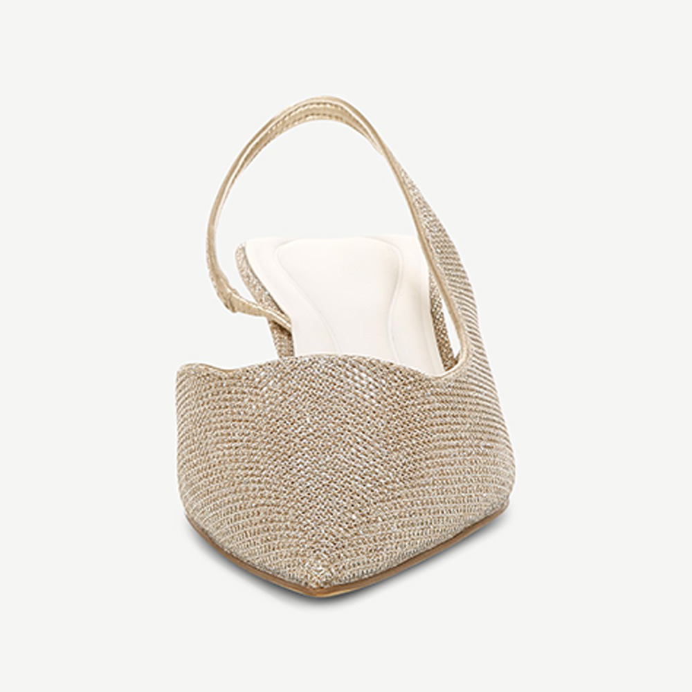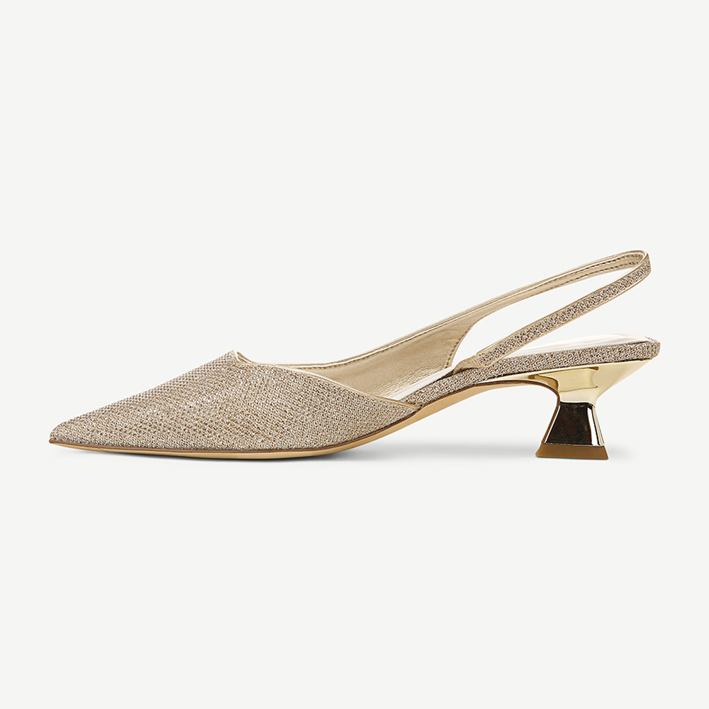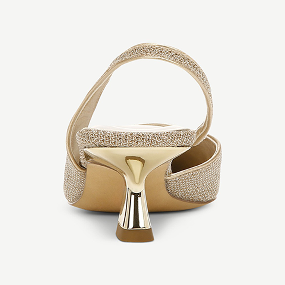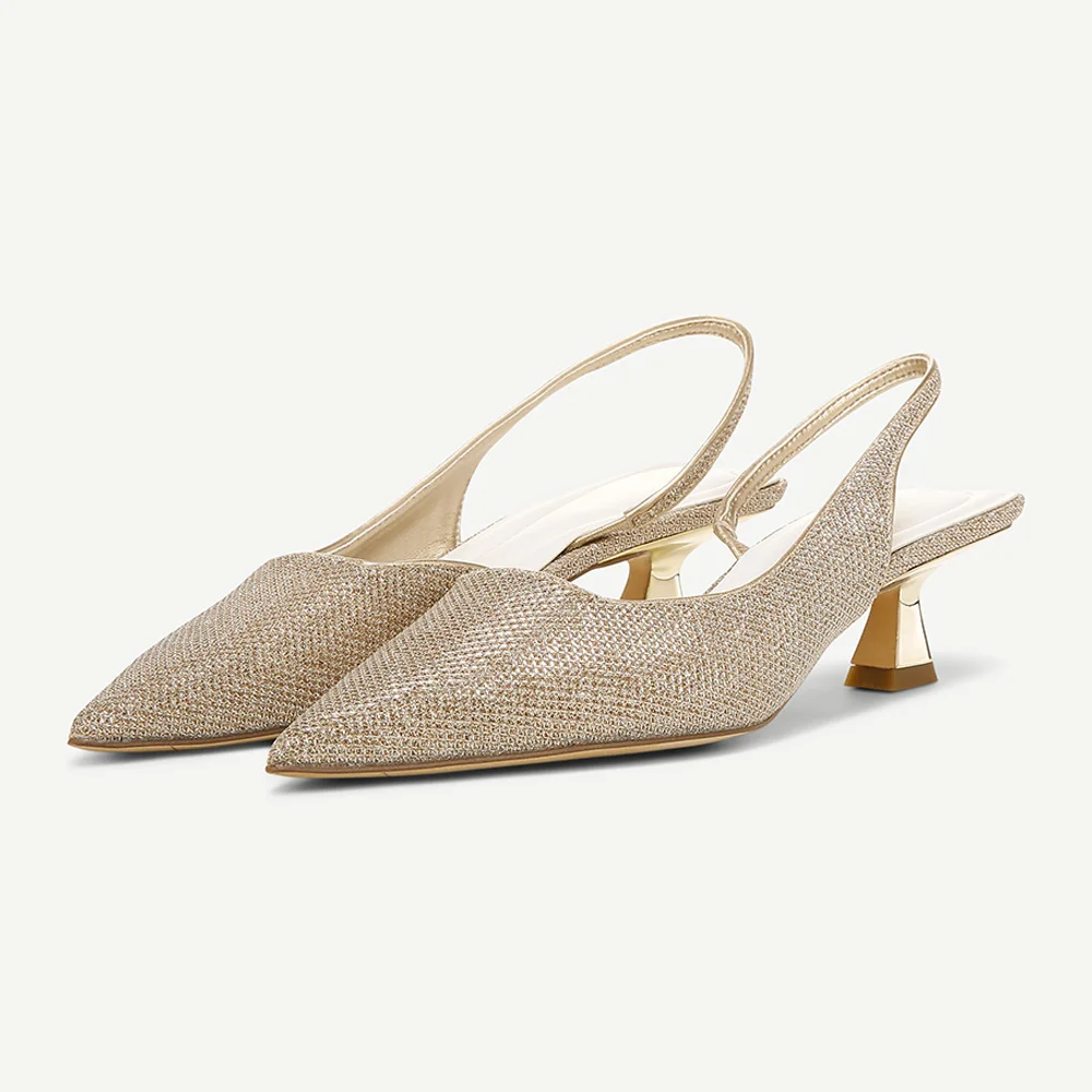 Women's Fashion Gold Fabric Pointed Toe Slingback Kitten Heels