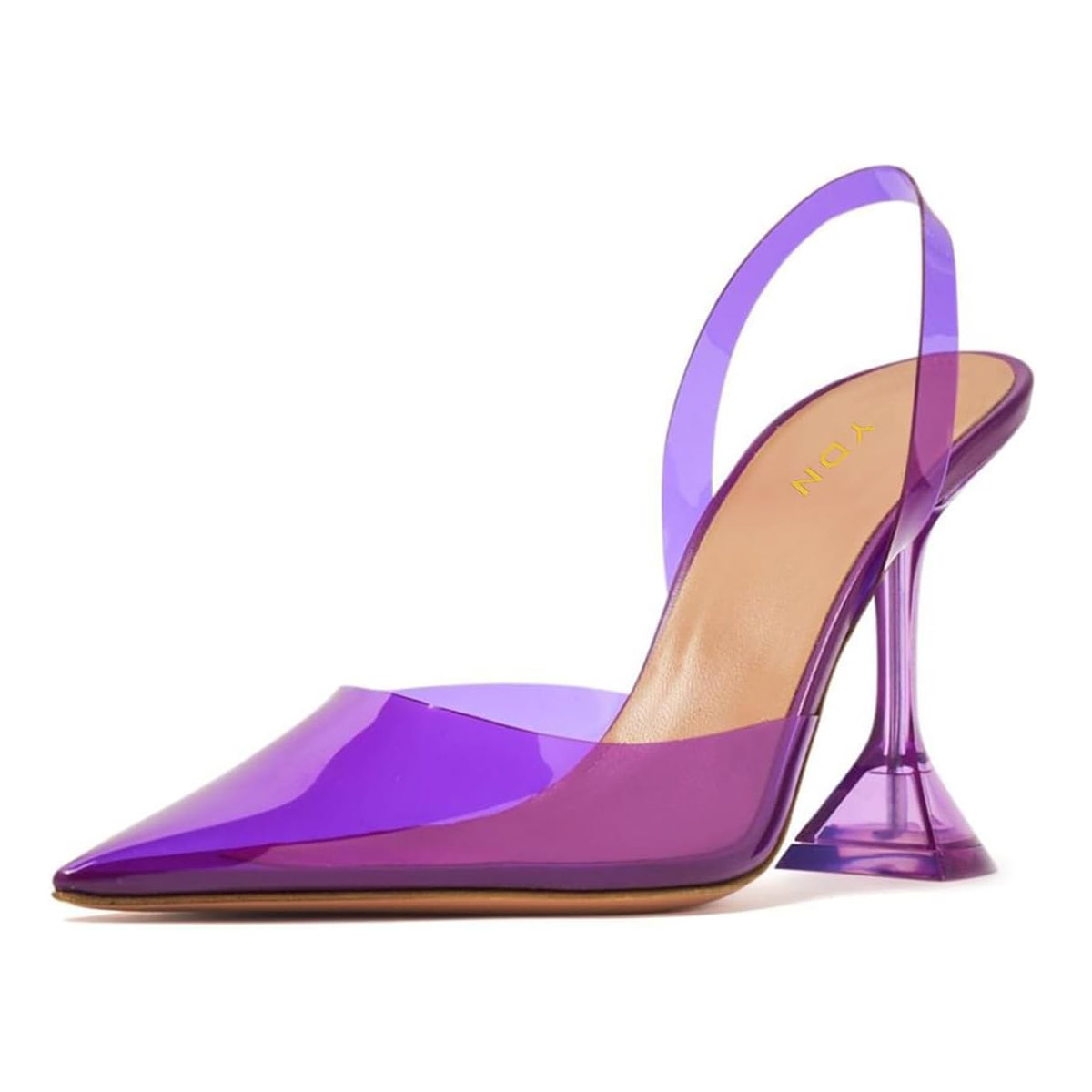 Women's Flared Heel Pointed Toe Purple Clear Slingback Heels