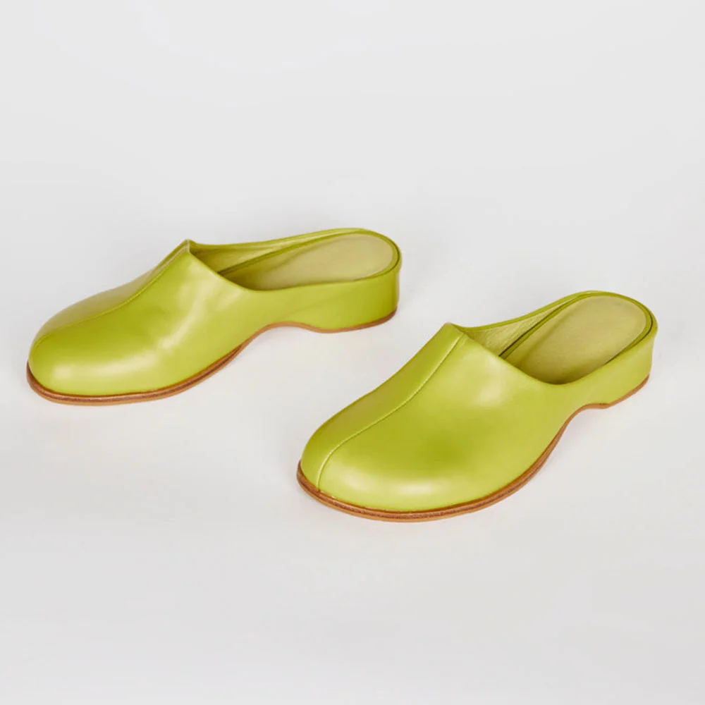 • Special Designs: The green flat mules feature a round closed toe, slip on conveniently.