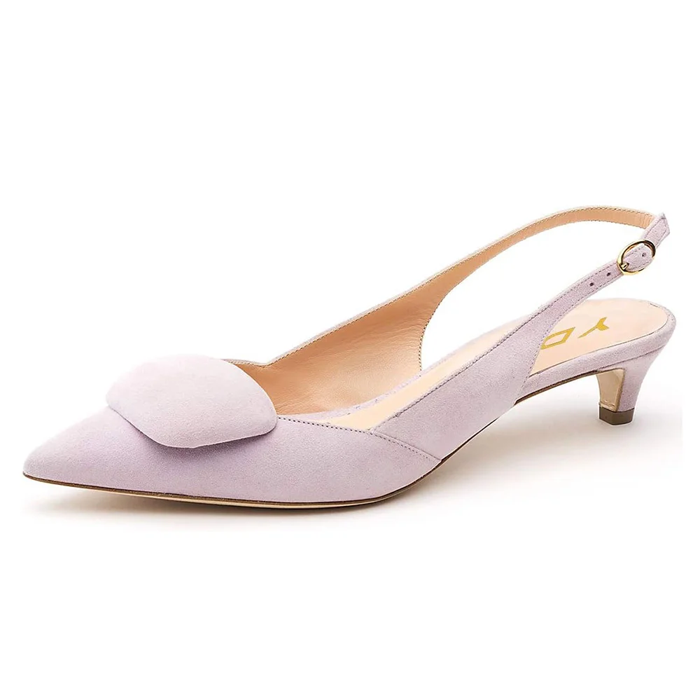 Women's Light Purple Vegan Suede Slingback Pointed Toe Heels
