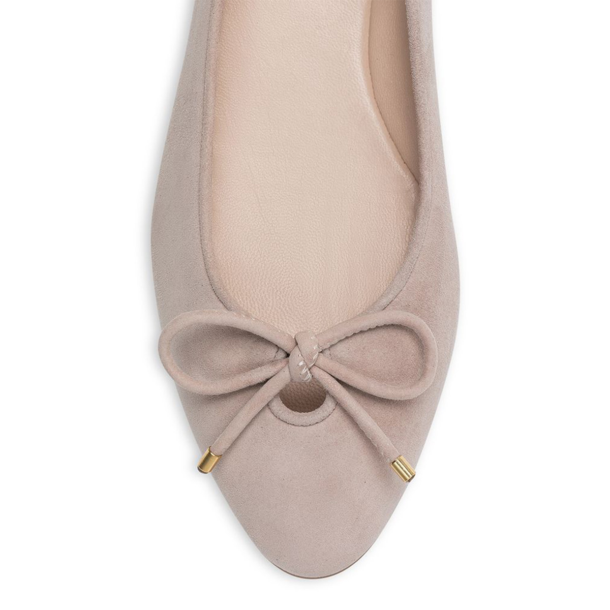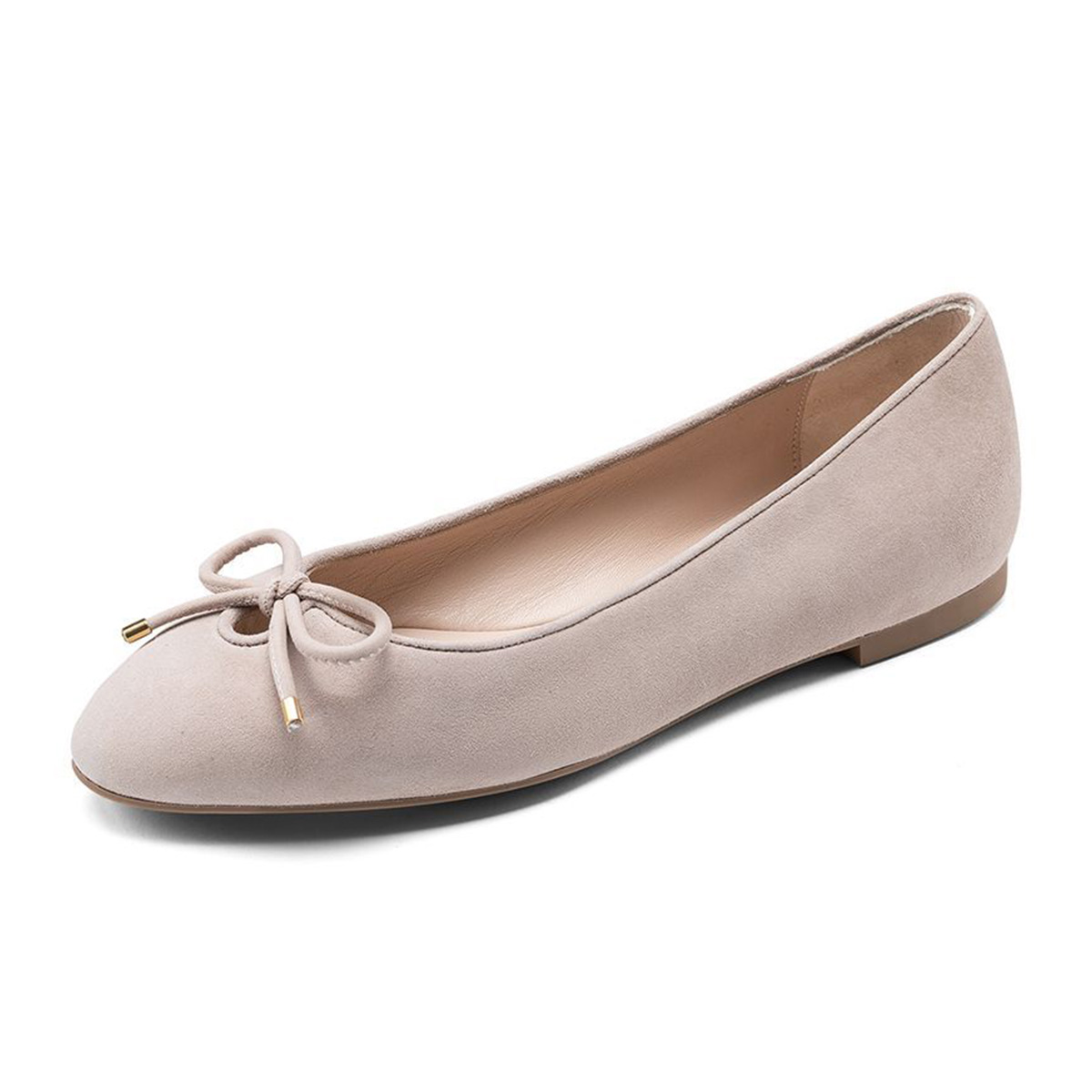 Women's Light Pink Vegan Suede Round Toe Slip On Ballet Flats with Bow
