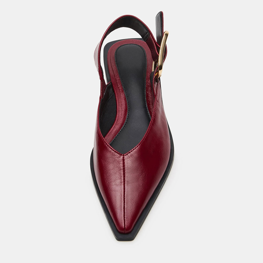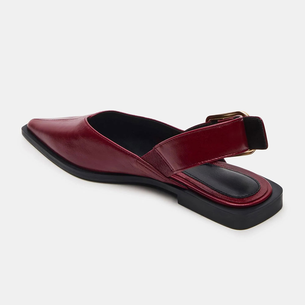 Women's Maroon Pointed Toe Casual Slingback Flats with Buckle