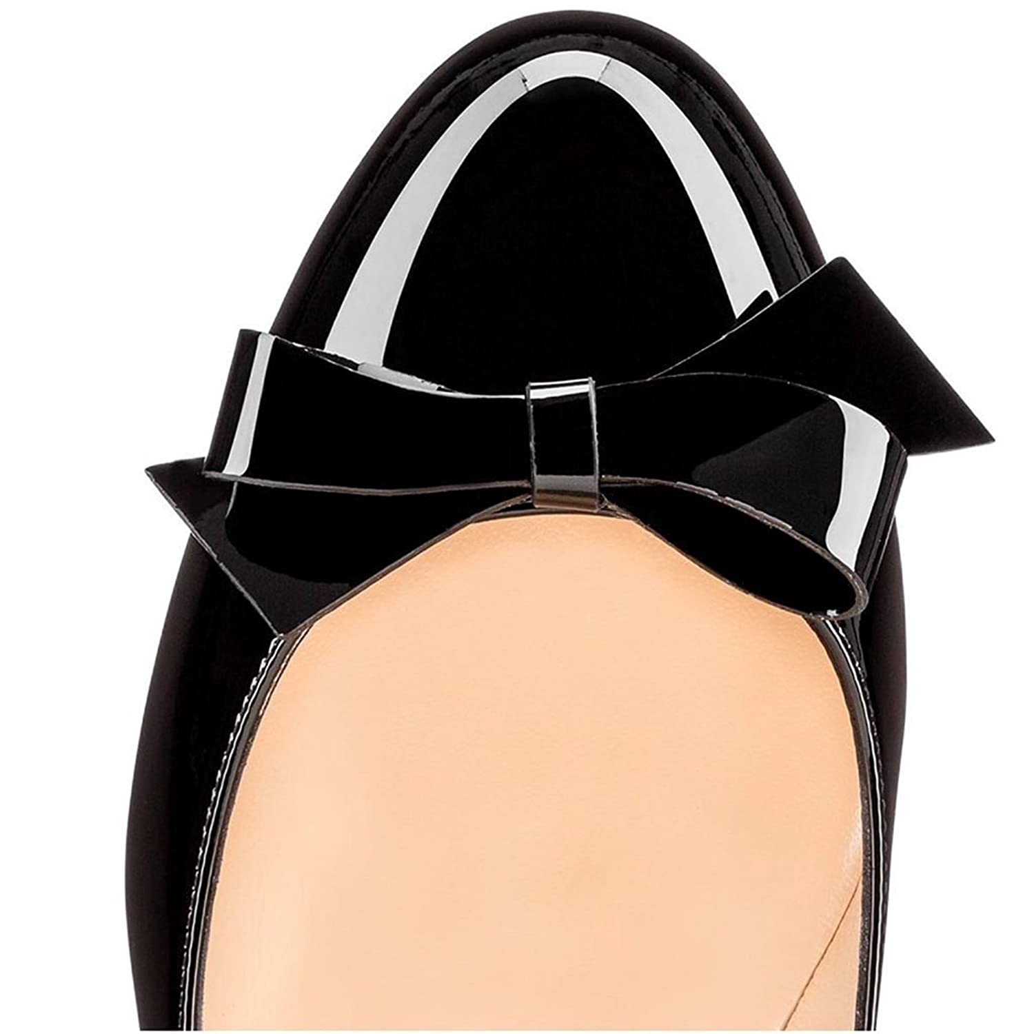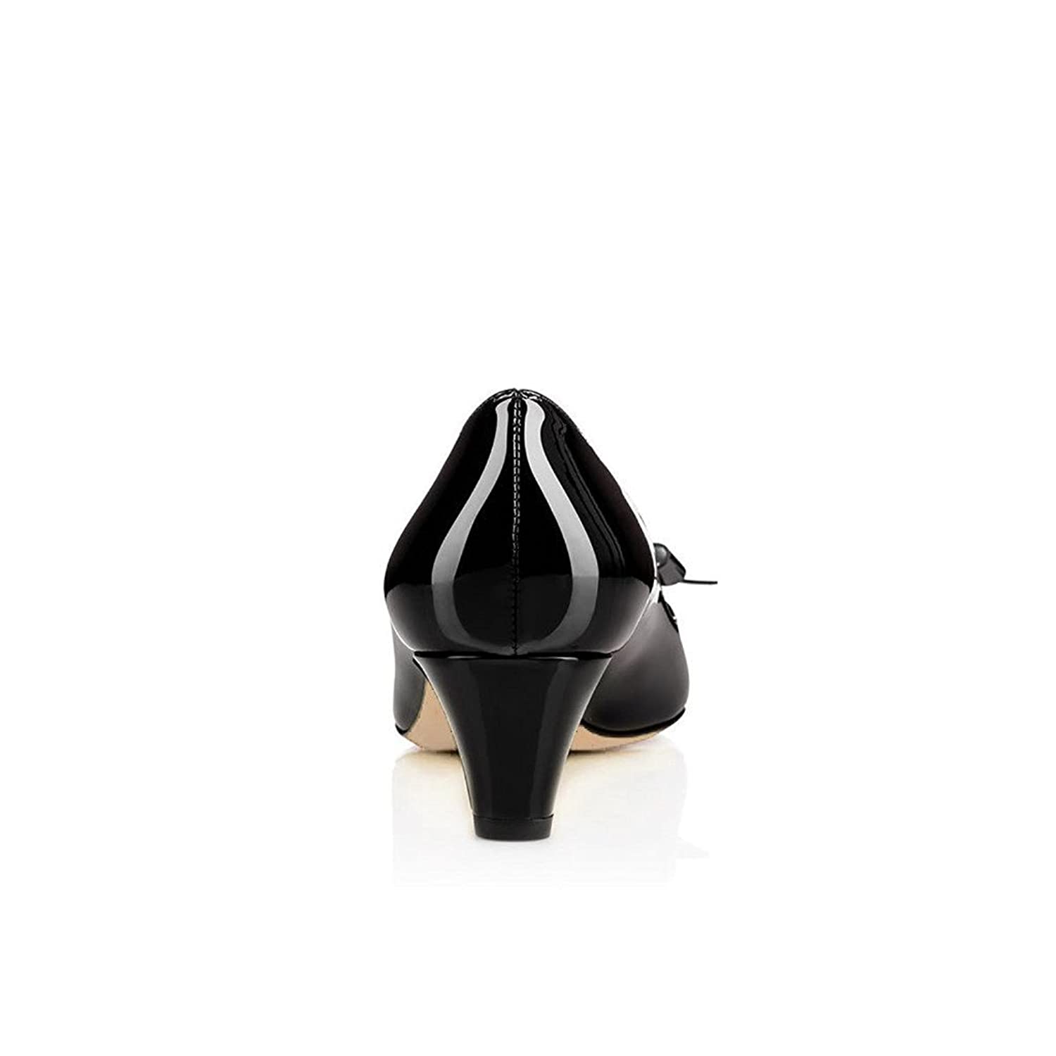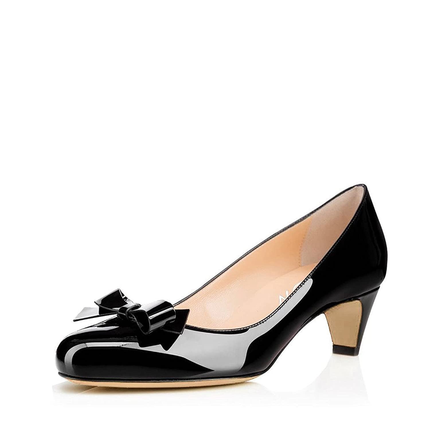 Women's Black Patent Leather Round Toe Kitten Heel Pumps with Bow