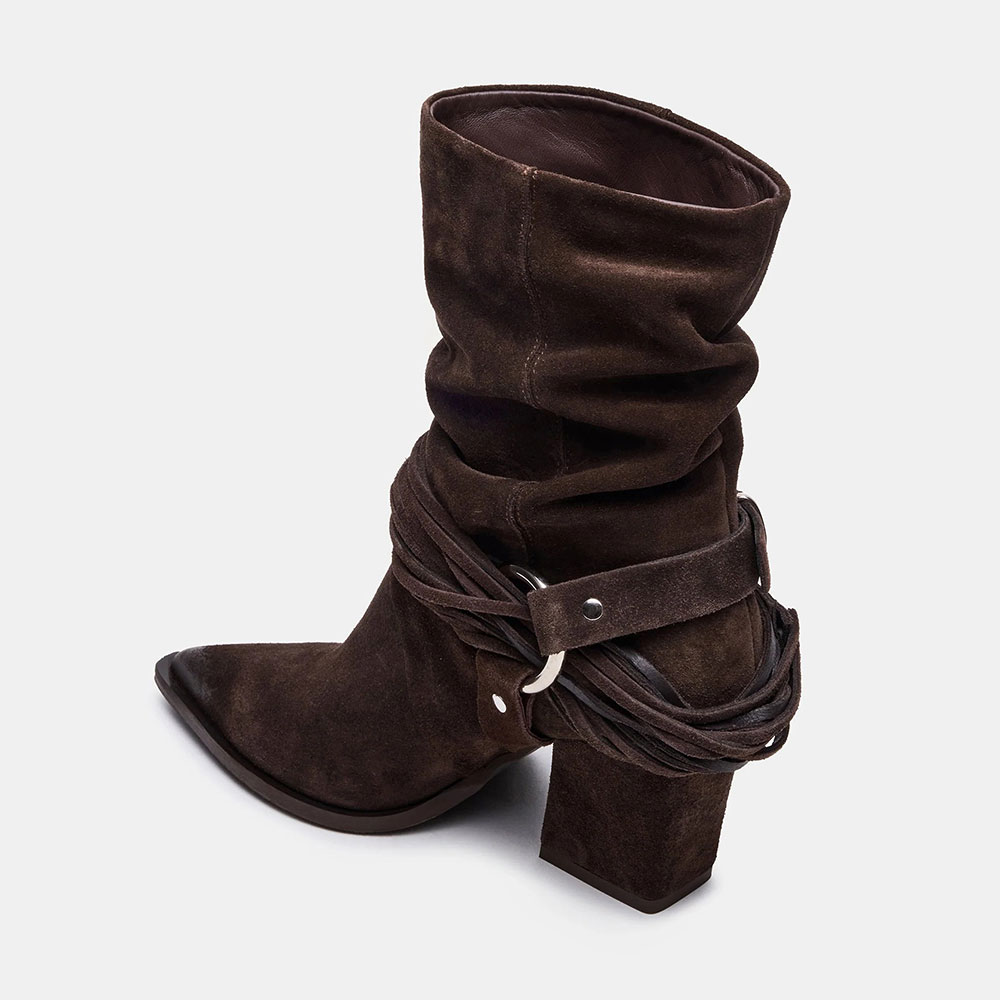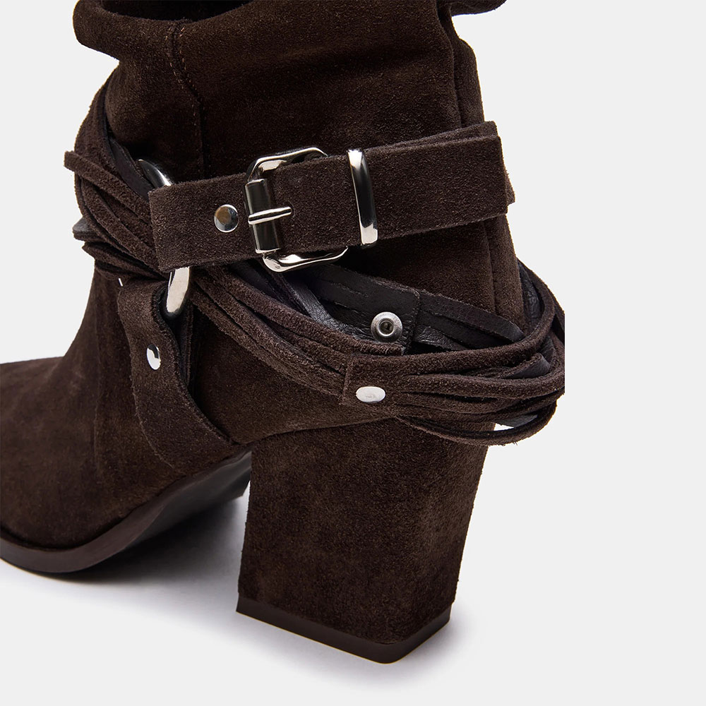 • Special Designs: The brown ankle boots feature a pointed toe and wraparound buckle detailing at the ankle, adding an edgy, statement touch.