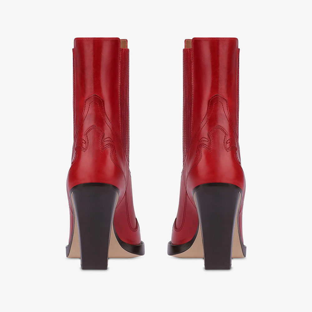 Women's Red Embroidered Pointed Toe High Heel Cool Chelsea Boots