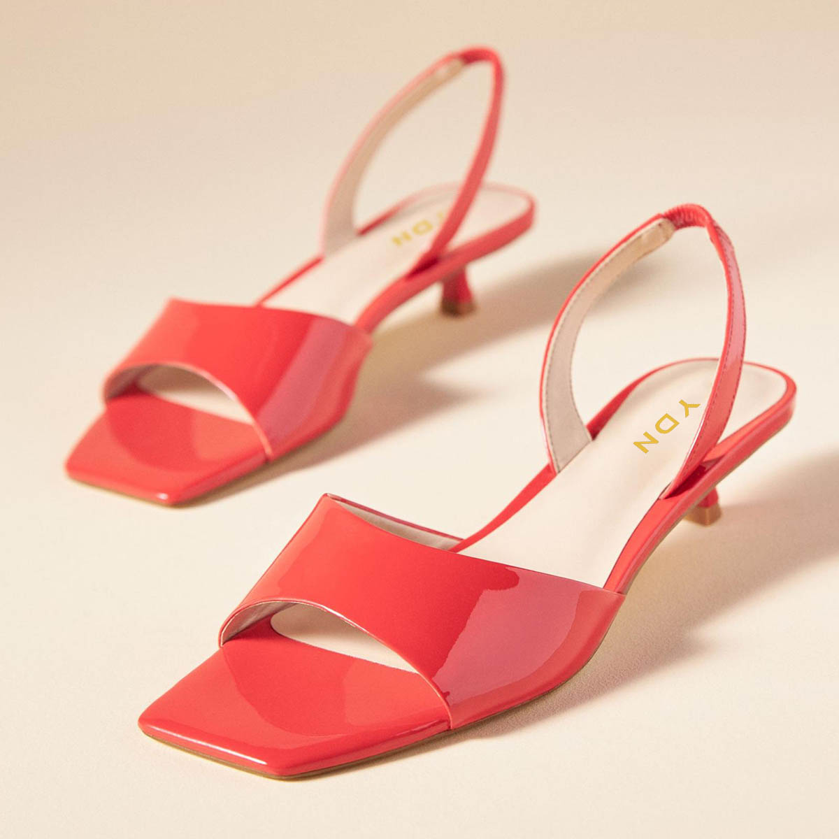 Women's Red Patent Leather Open Square Toe Slingback Kitten Heels