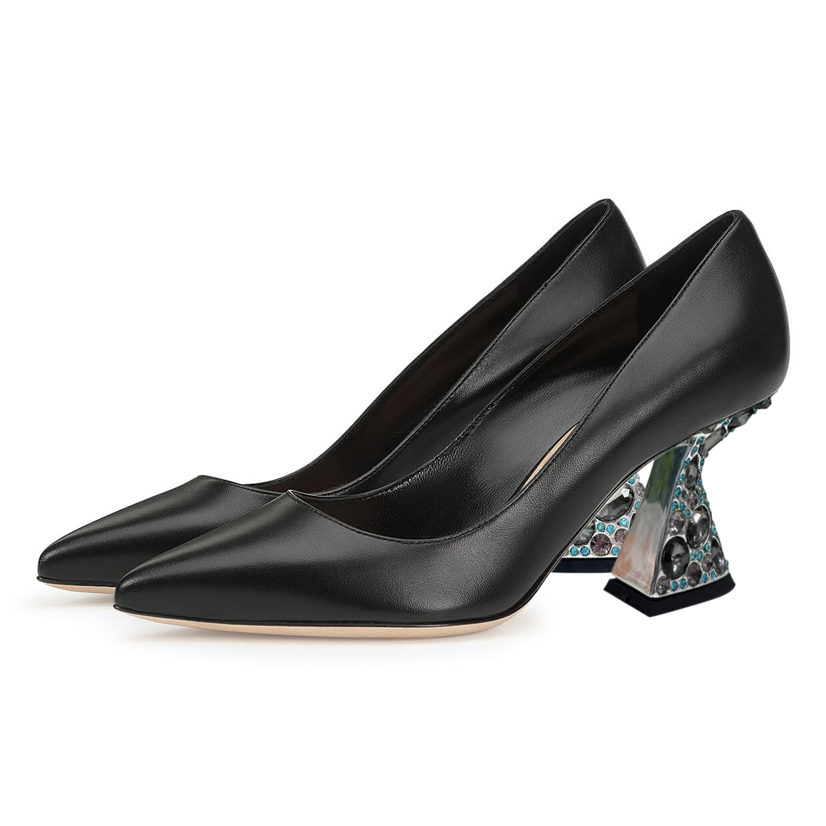 Women's Rhinestone Sculptural Heel Pointed Toe Dressy Black Pumps