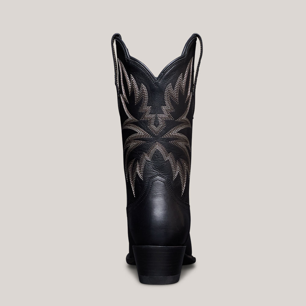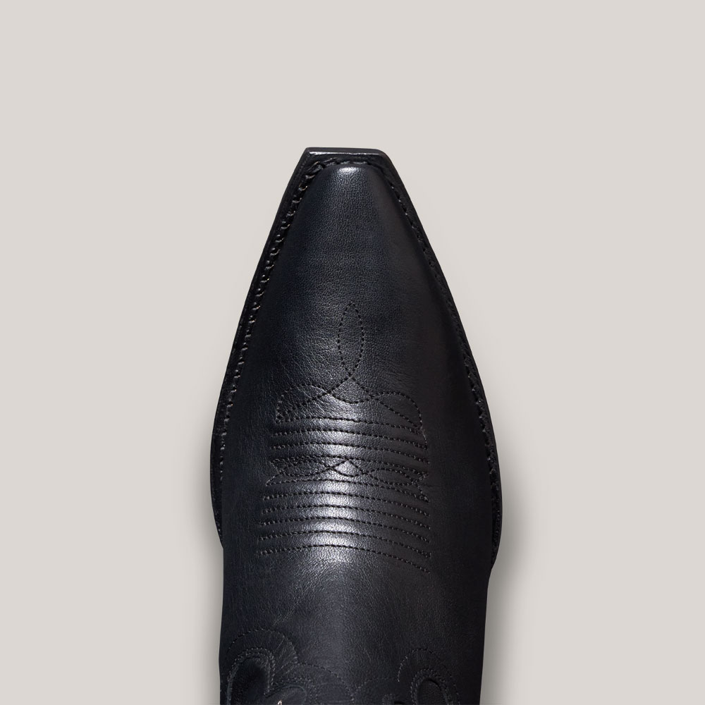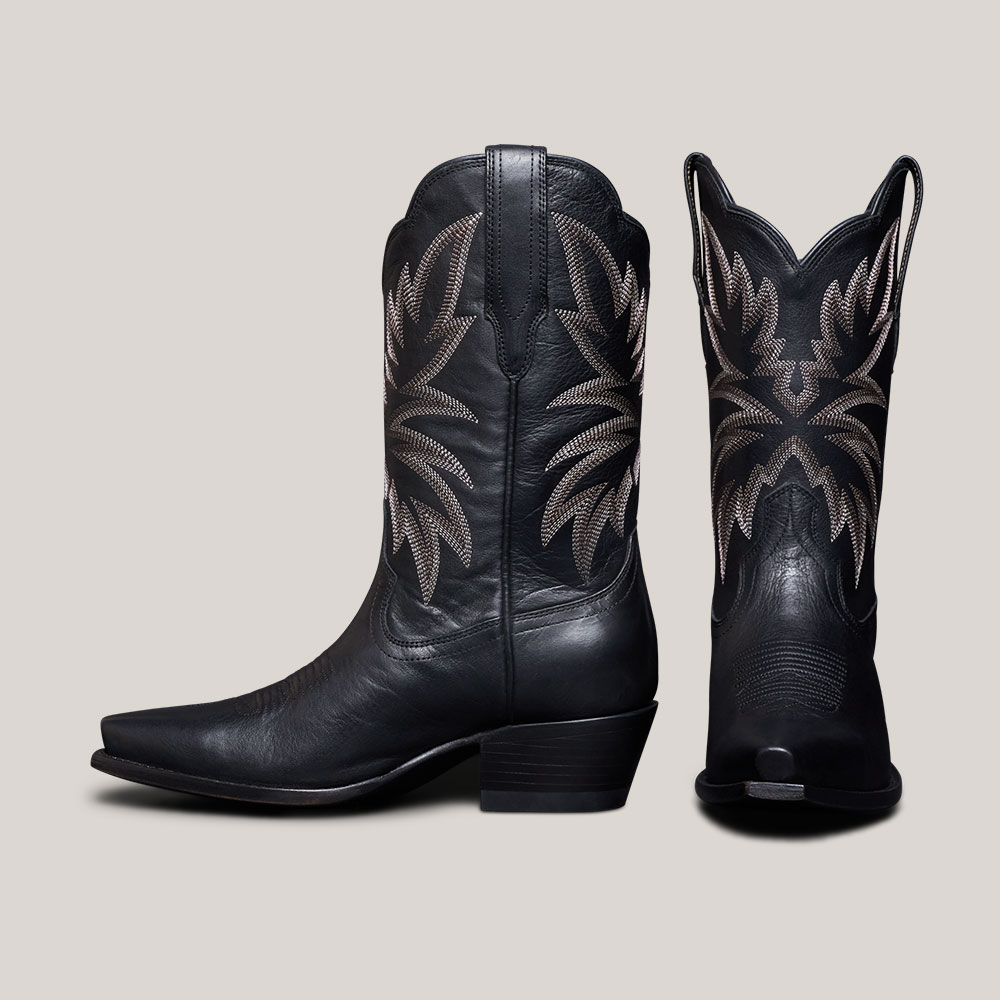 Women's Snip Toe Block Heel Black Embroidered Cowgirl Boots