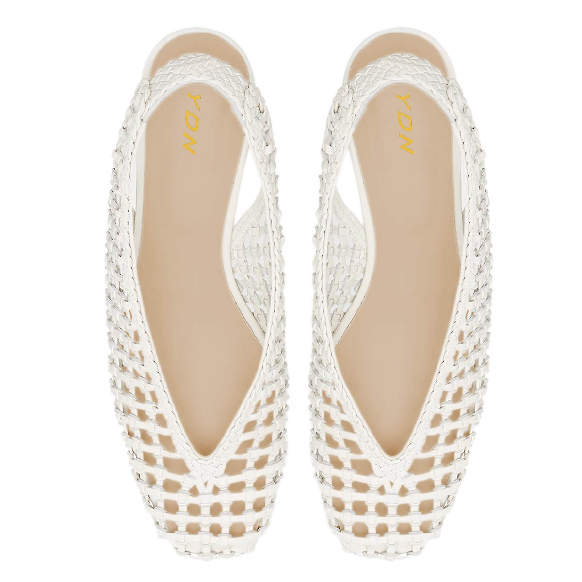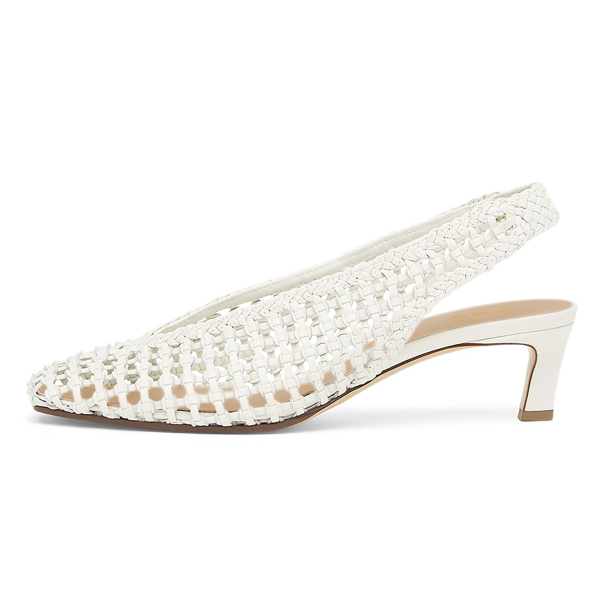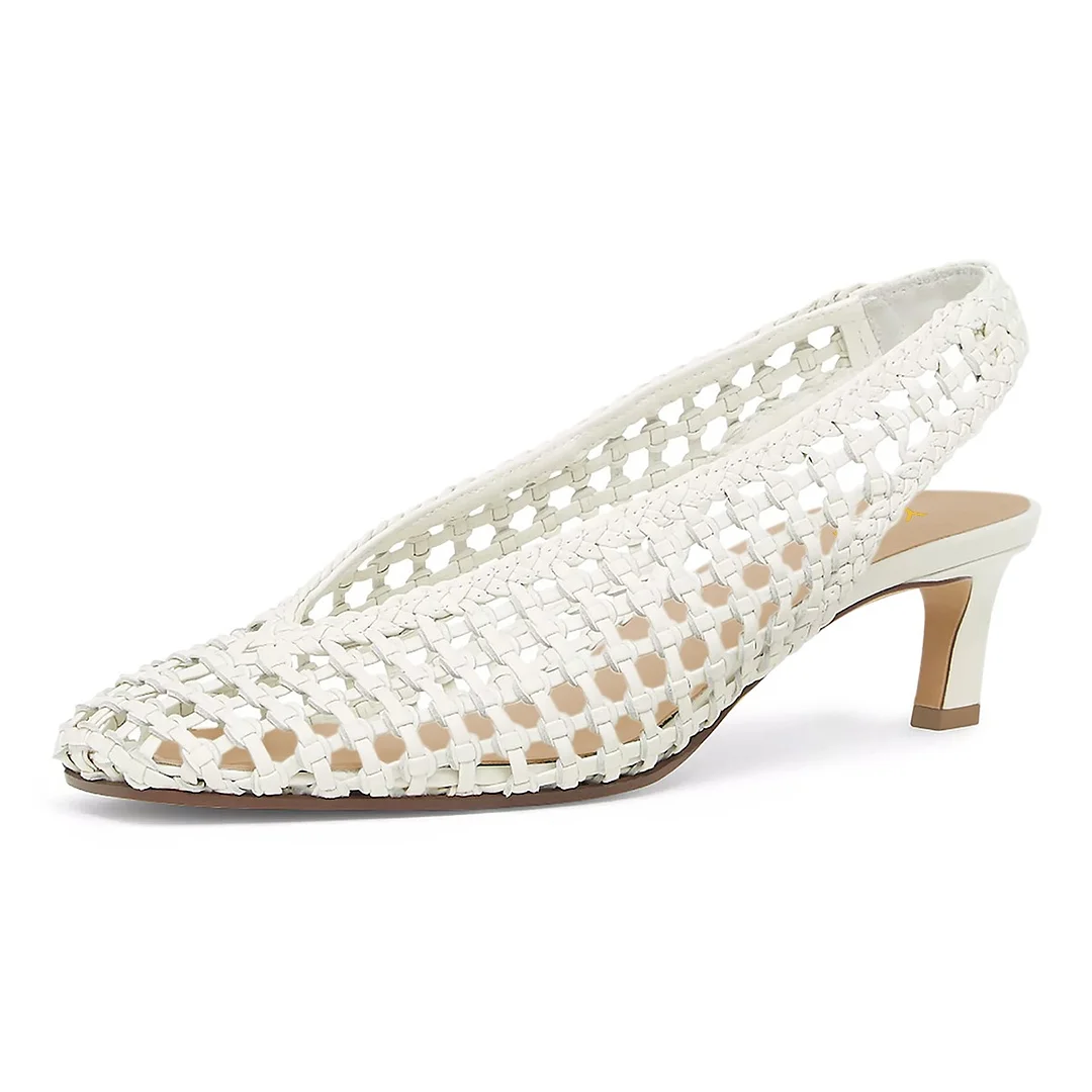 Women's Square Toe Kitten Heel Slingback Woven Cut Out White Pumps