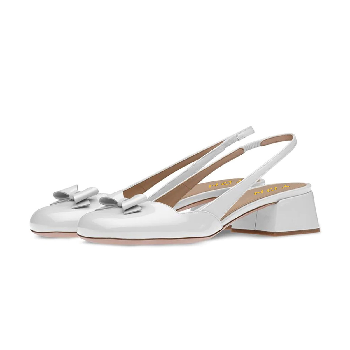 • Special Designs: The white slingback sandals feature block low heels and a square-toe design with a bow.