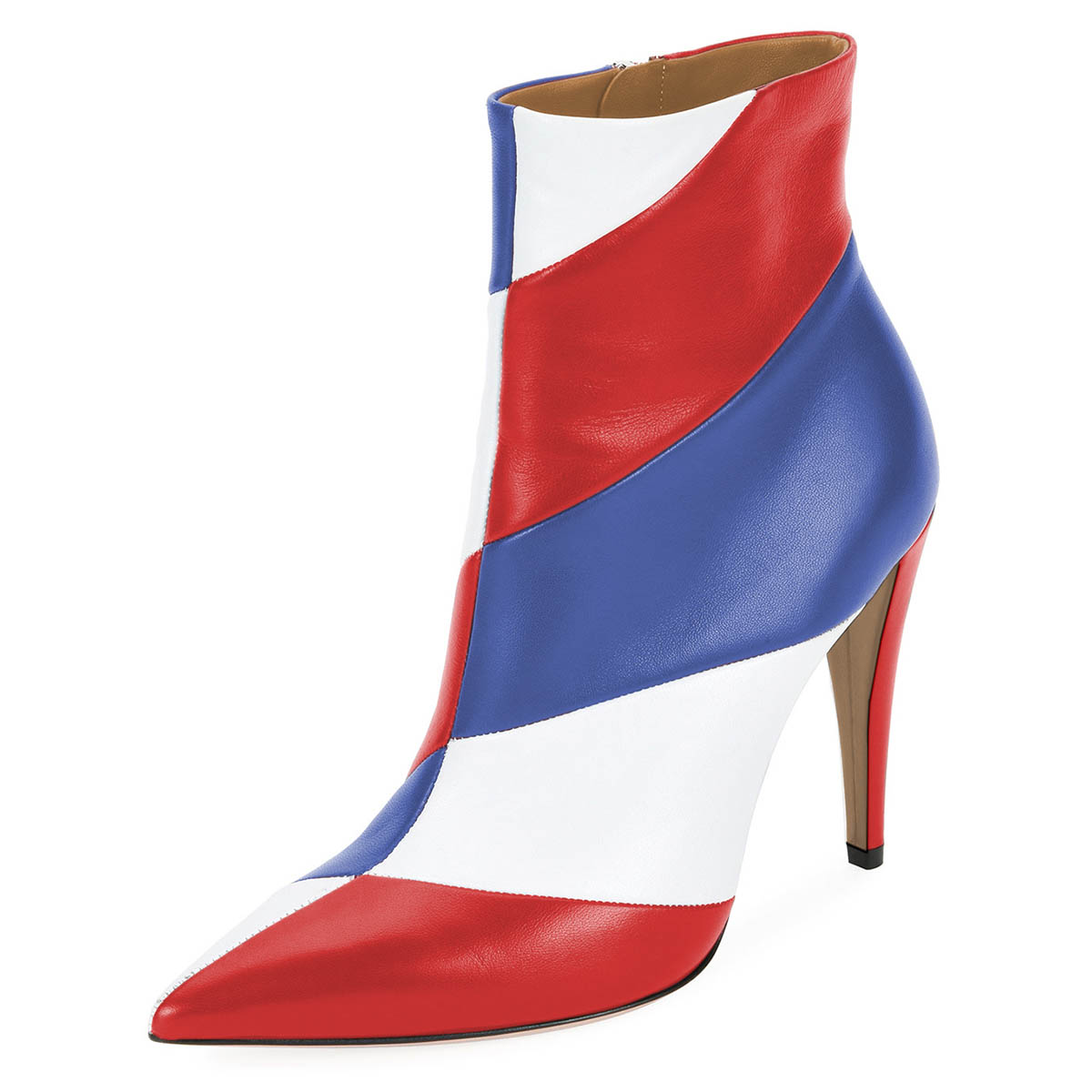 Women's Three-Color Stripe Pointed Toe Stiletto Heel Short Boots