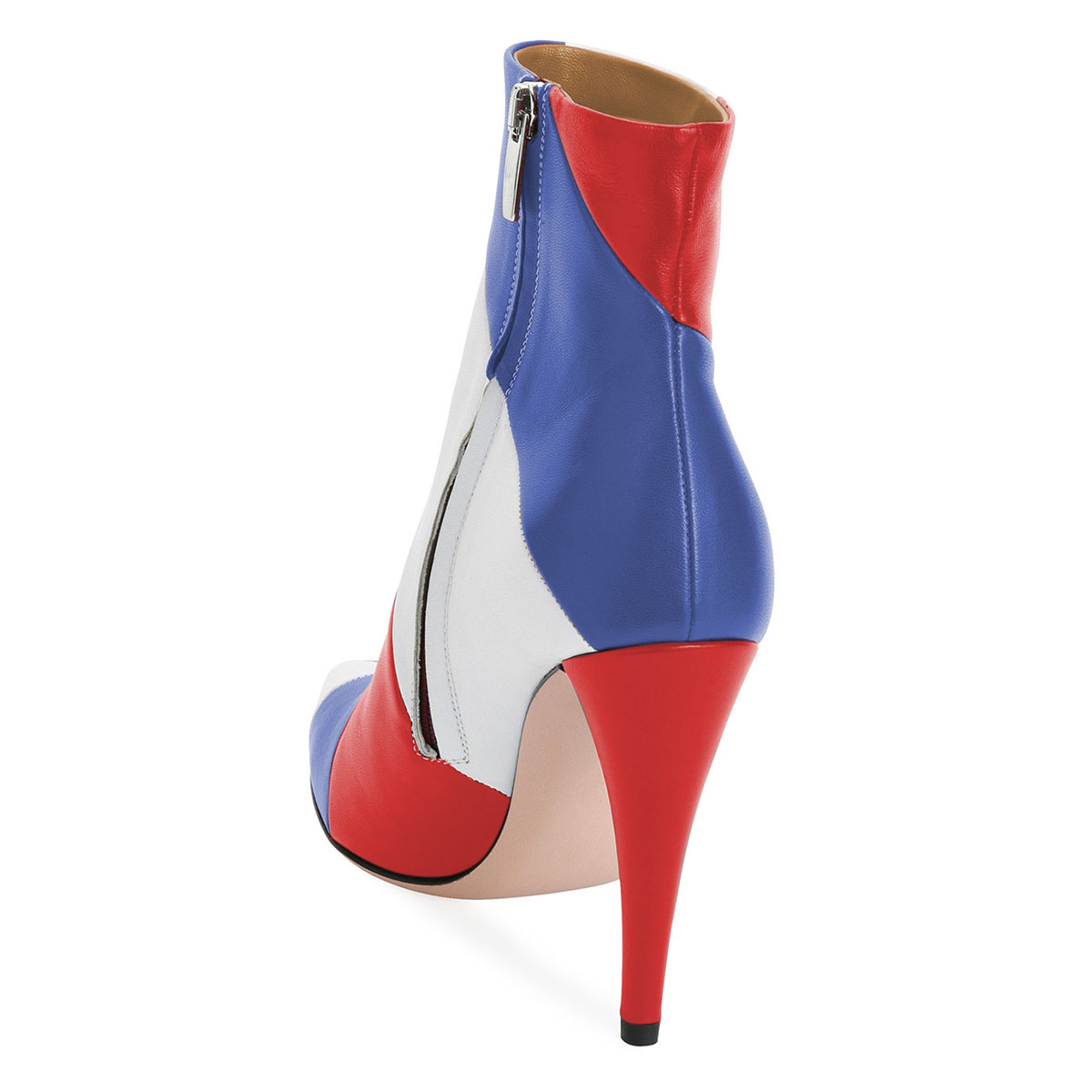 a three-tone contrast design and a side zipper for easy put on and take off.