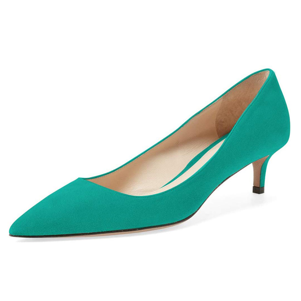 Women's Turquoise Vegan Suede Shoes Pointed Toe Kitten Heels