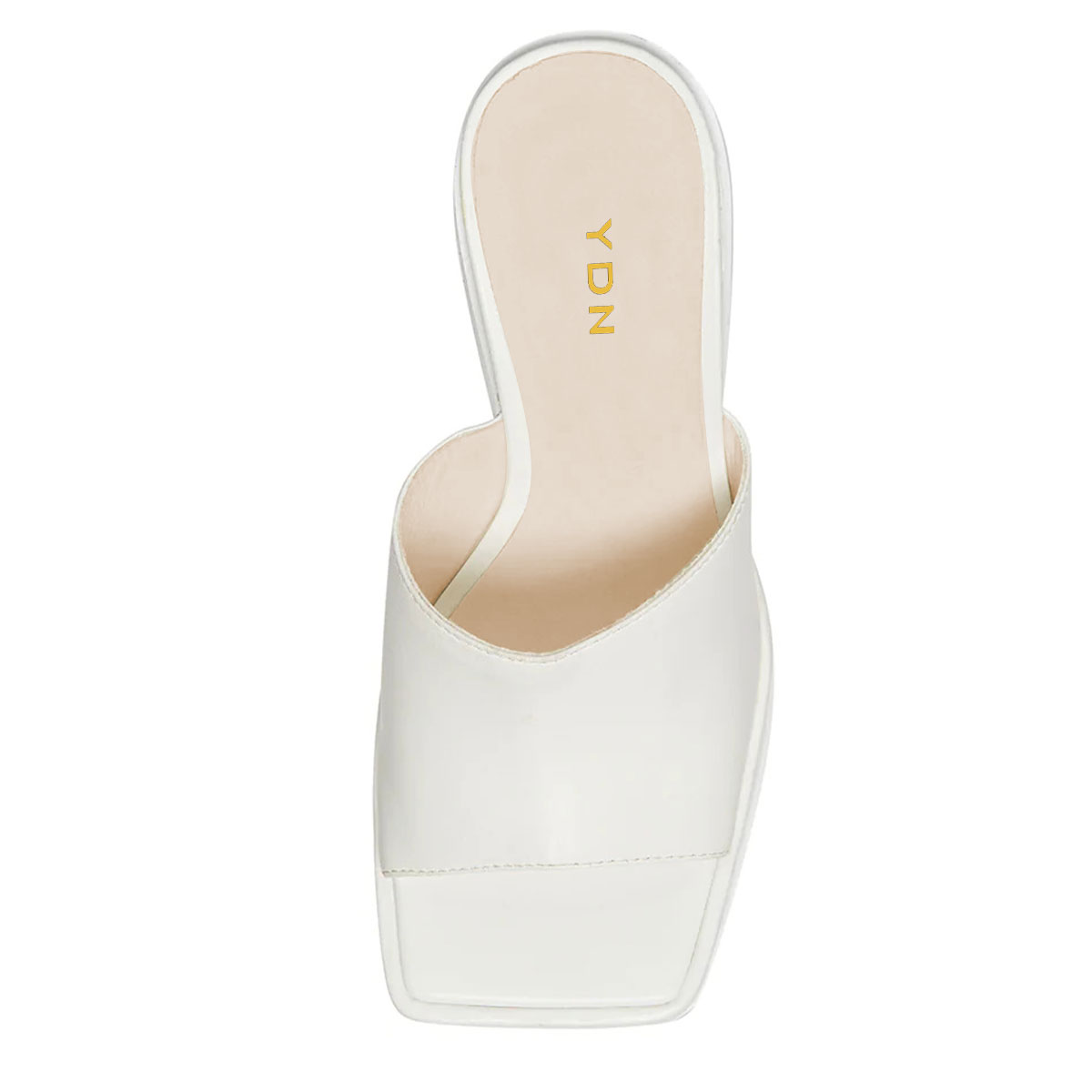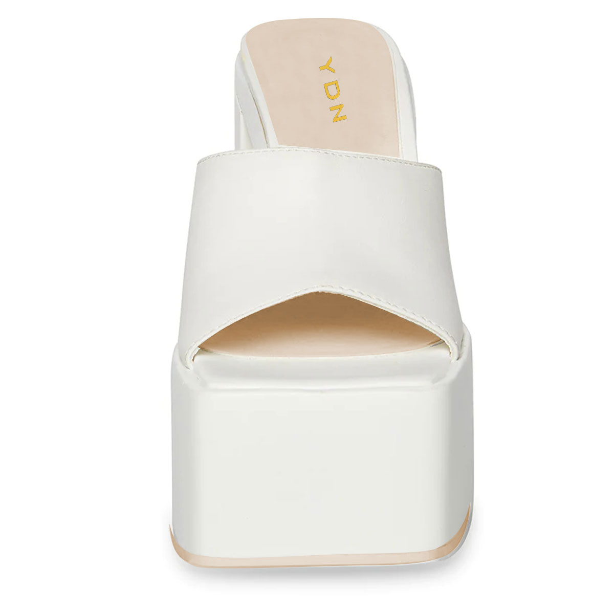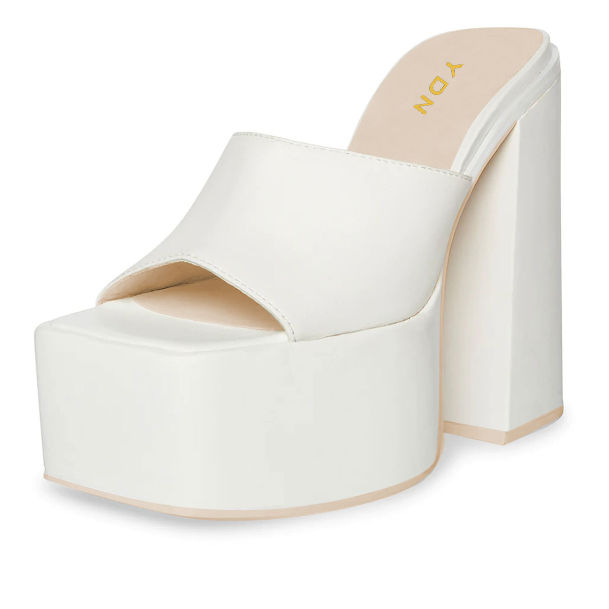 Women's Vegan Leather Square Toe Platform Block Heel Mules in Ivory