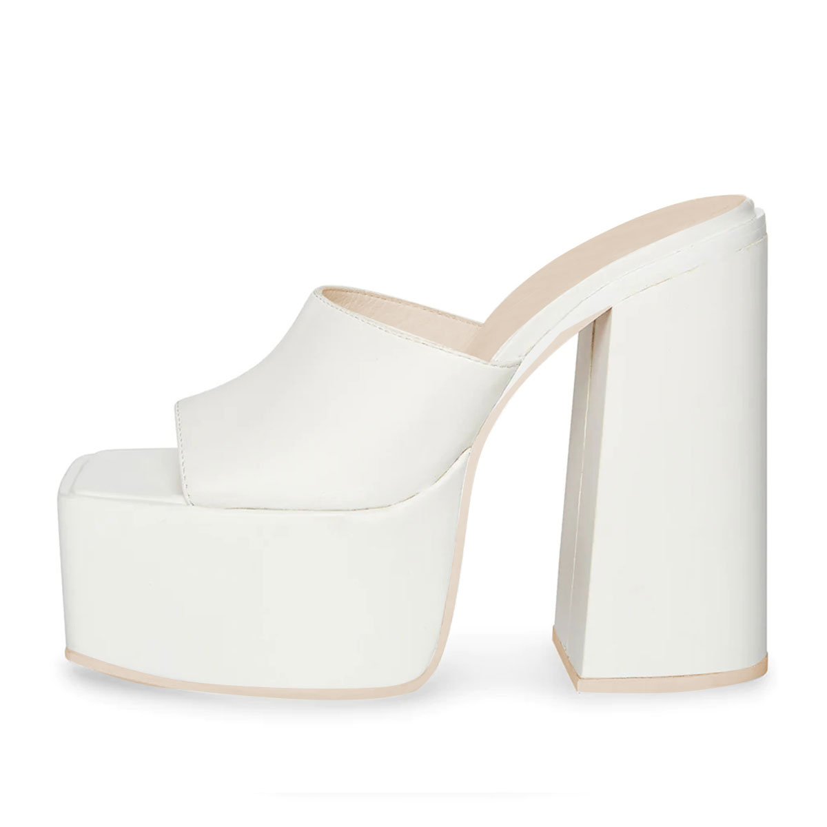 • Special Designs: Ivory classy mules feature a bold platform, wide band design and an elegant high heel.