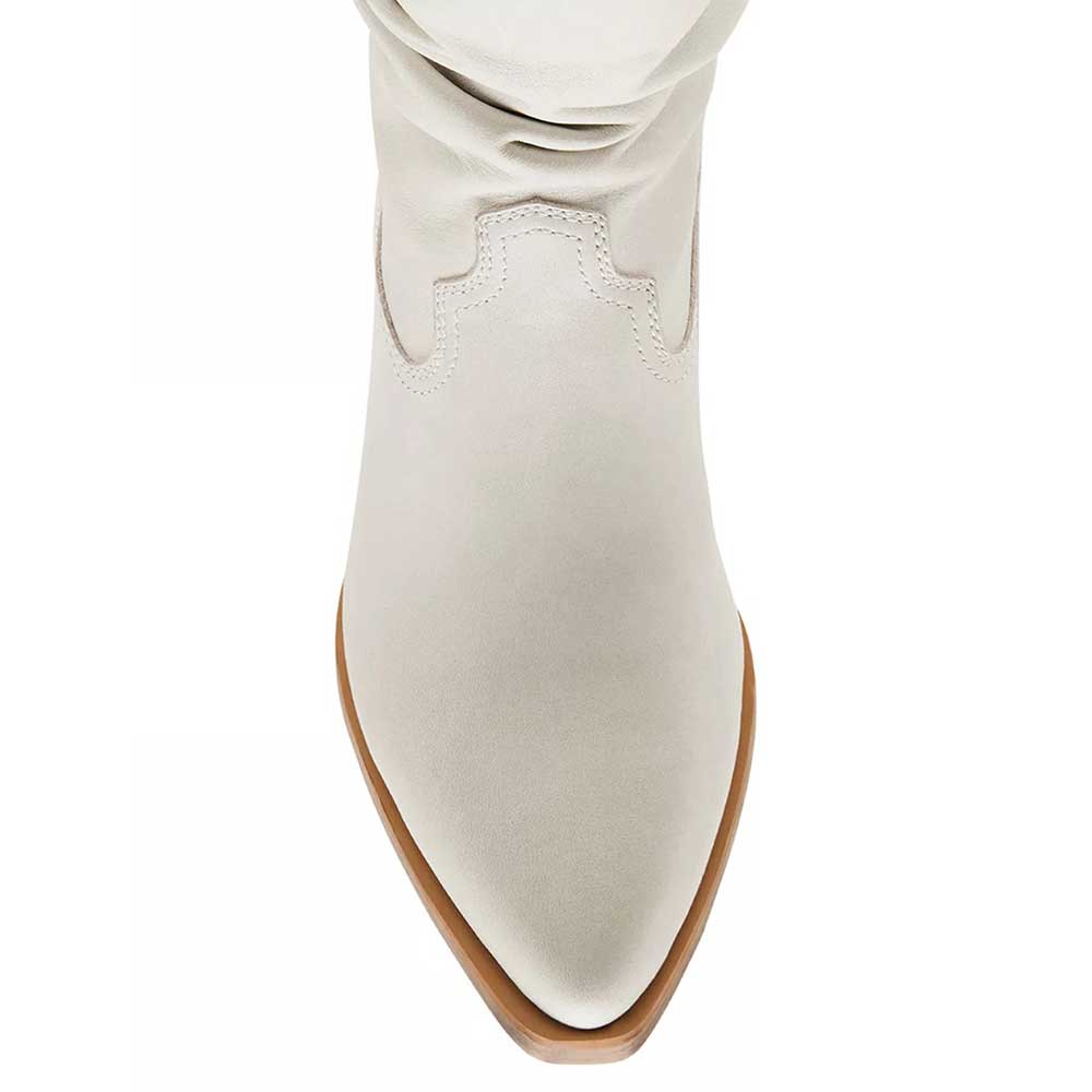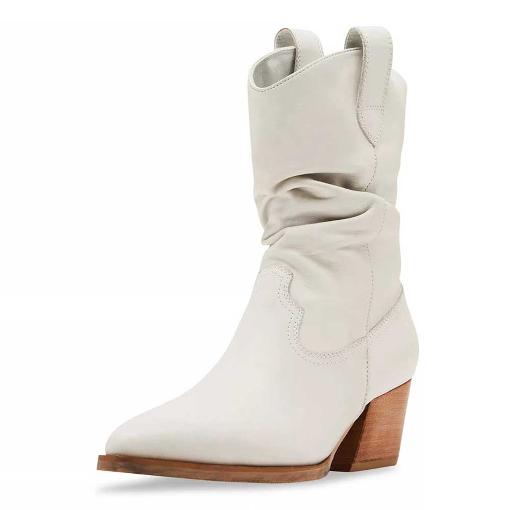 Women's White Pull On Almond Toe Stacked Heel Western Slouch Boots