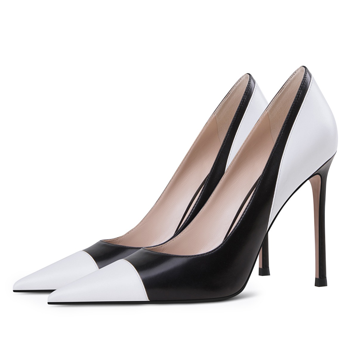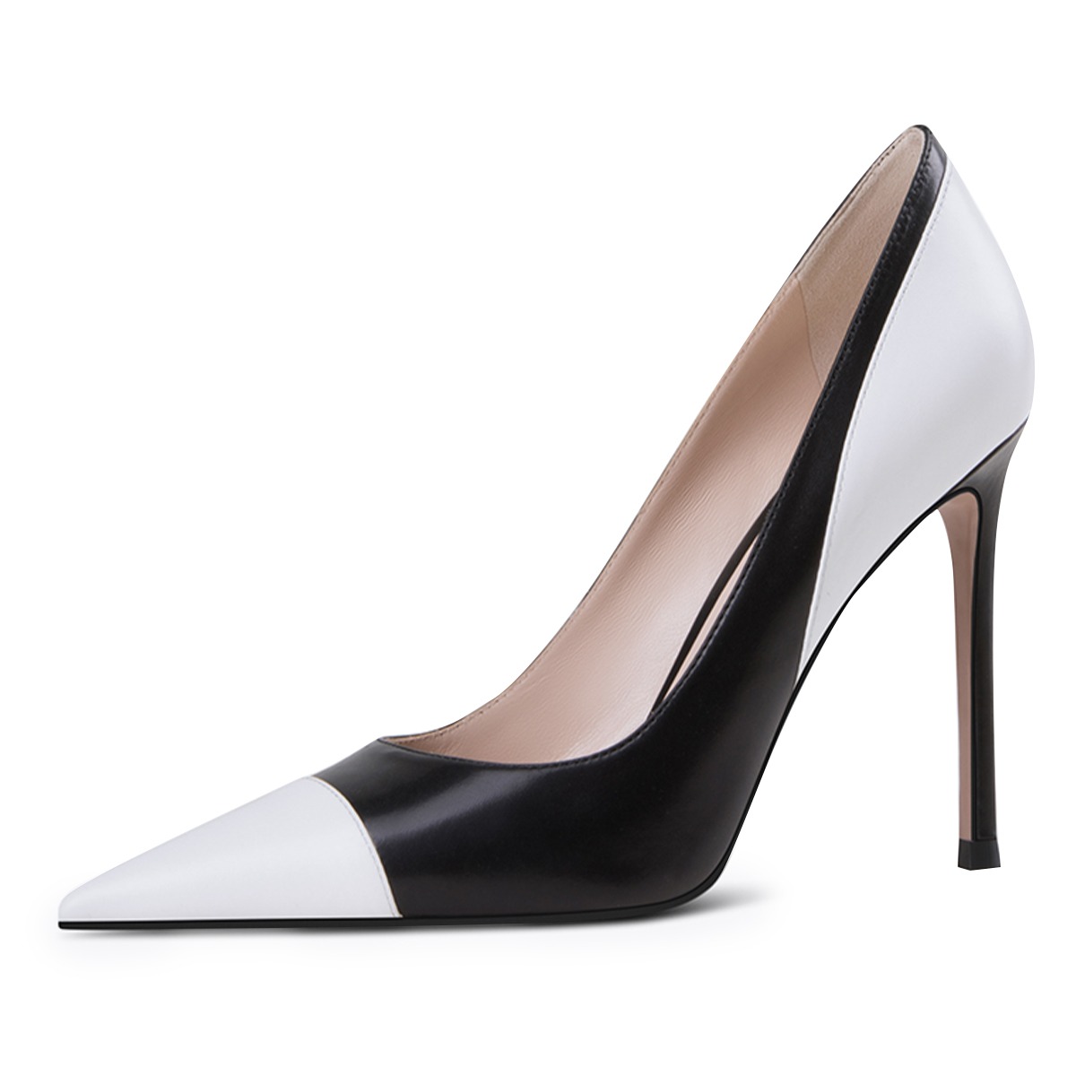YDN Black and White Pointed Toe Stiletto Heel Pumps for Women