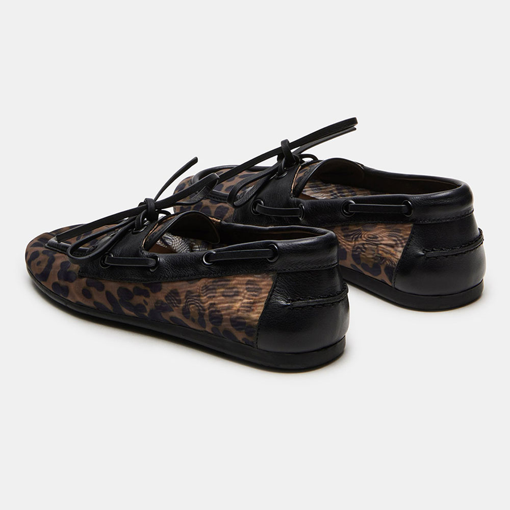 YDN Black Leopard Print Round Toe Lace-Up Flat Loafer Shoes Women