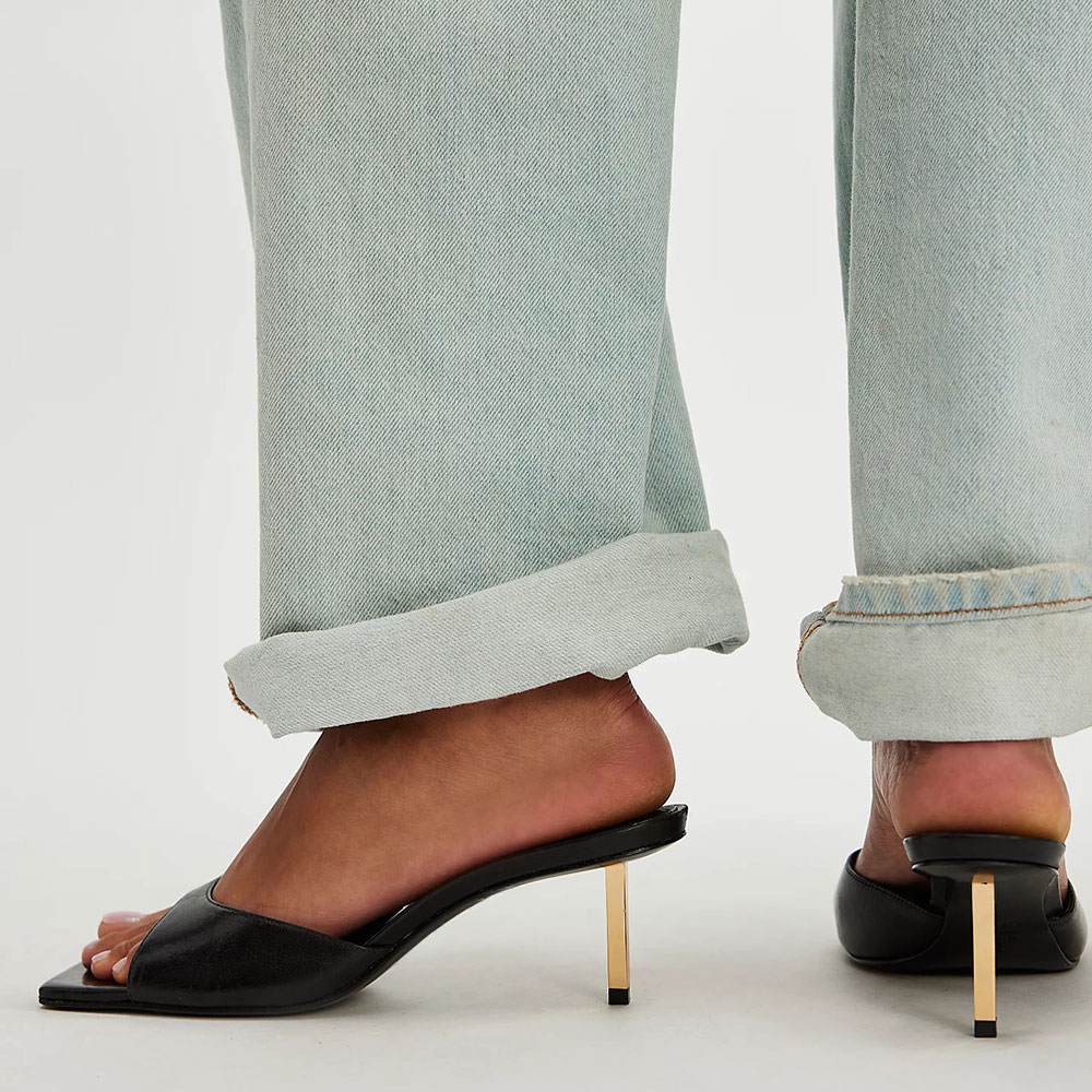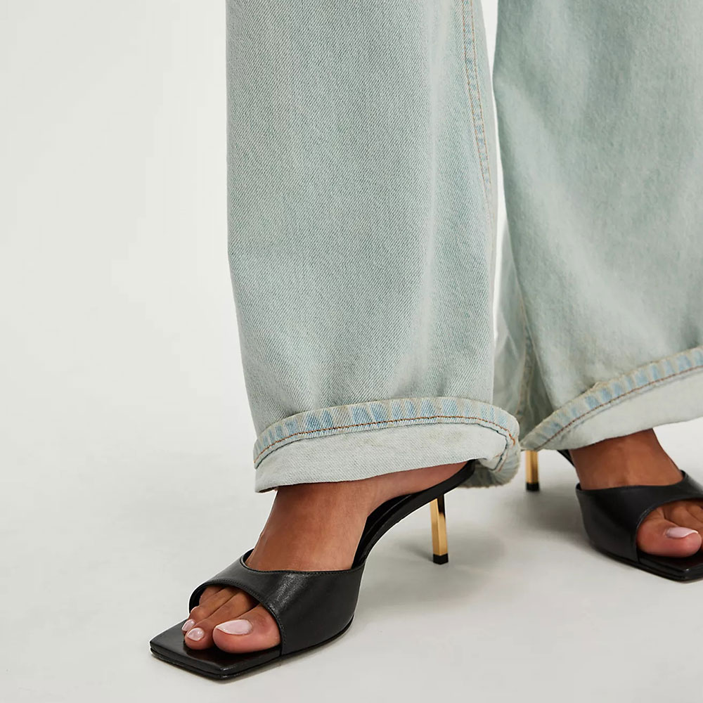 • Special Designs: The open-toe stiletto heel mules feature a slip-on design.